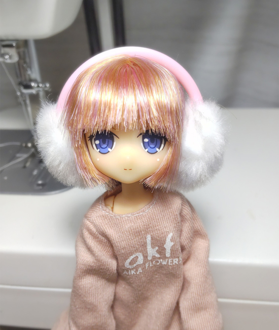 ちなみにイヤーマフは百均で売っている梵天を指で潰しアルミ線を刺して接着してるだけ。数分で作れるヨ。