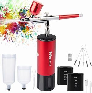 ペイントマーカーをセットして風圧で飛ばすもの。さすがに本格的なエアブラのグラデーション塗装等は難しいが、ベタ塗りなら十分。基本的にガス缶を使うものだけど、このガス缶がすぐ無くなるので、コードレスのエアブラシシステム等を持っていると便利。