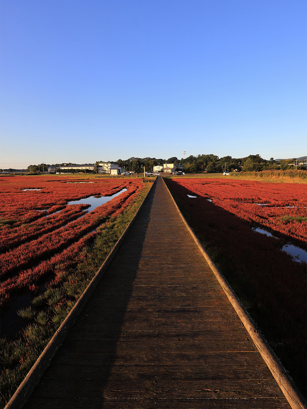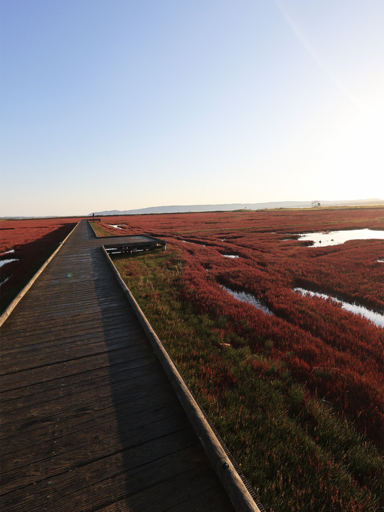 広角で撮っているので広く感じるが、250m*150mほどの敷地だ。ちなみにこれ、自然のものではないらしい。元々は自然に生えていたらしいが、何度か壊滅的な状態になったらしい。そのたびに湿地を整備したり種を蒔いたりと維持してきたとのこと。