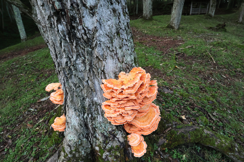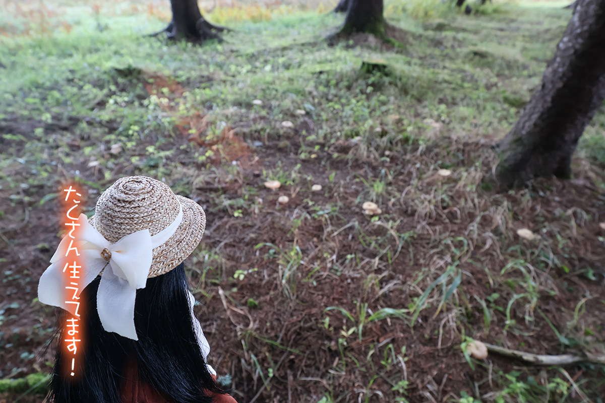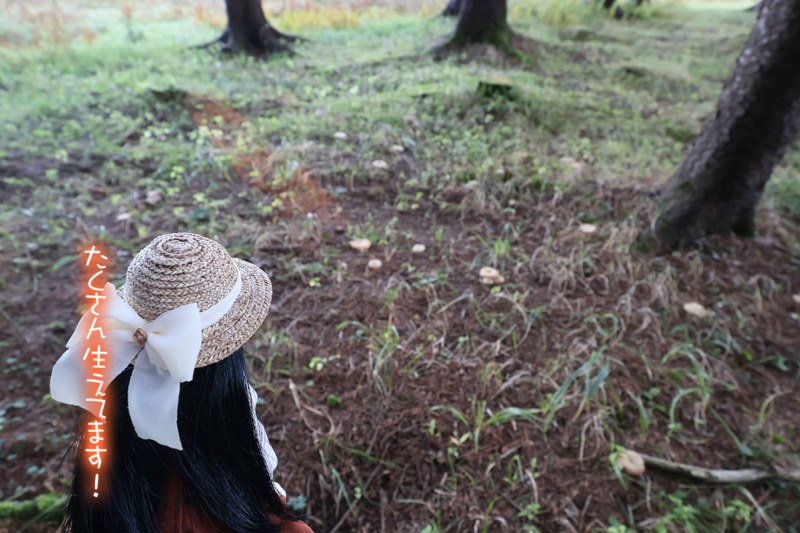 その後もあちこち🍄を探したが見つからず、そろそろ森を出ようかと思っていた矢先、気まぐれで植樹されたカラマツの下へ行ってみたら・・・