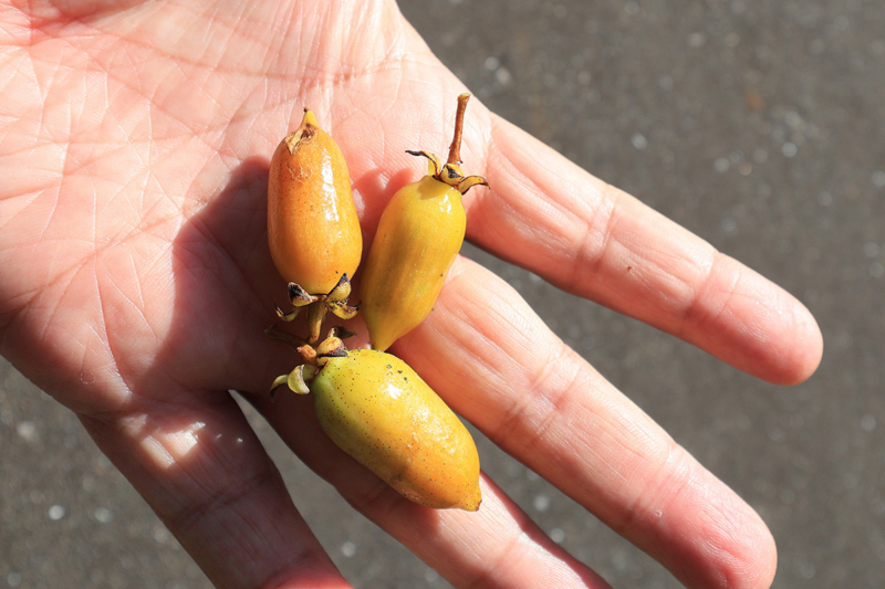 これが熟したマタタビの実。食べるのは初めてだったのだが・・甘いがあまり美味しいとは思えなかった(。-ω-)
