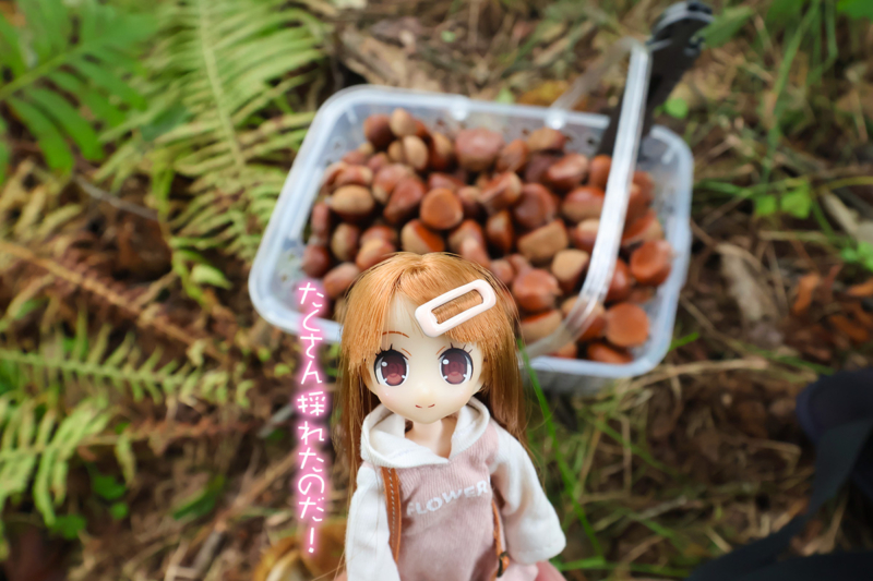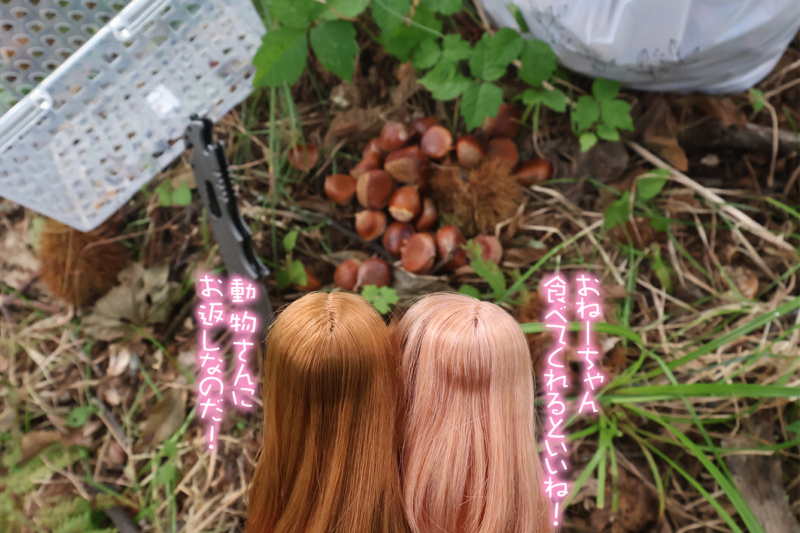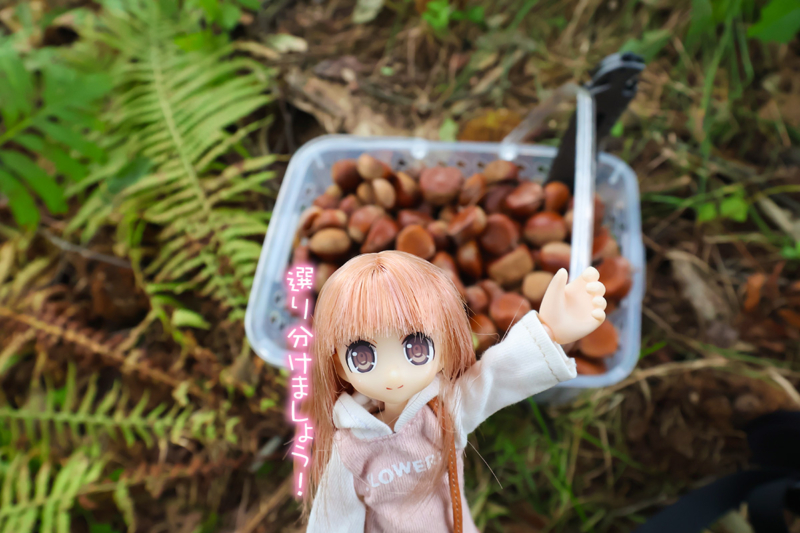 カメラなど荷物を木に引っ掛け身軽になり、三人でせっせと栗を拾った。
