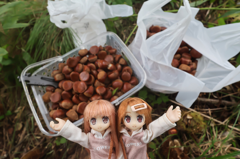 まだ薄暗い日曜日の朝、ネイリー姉妹を連れて栗拾いに行ってきた(`・ω・´)