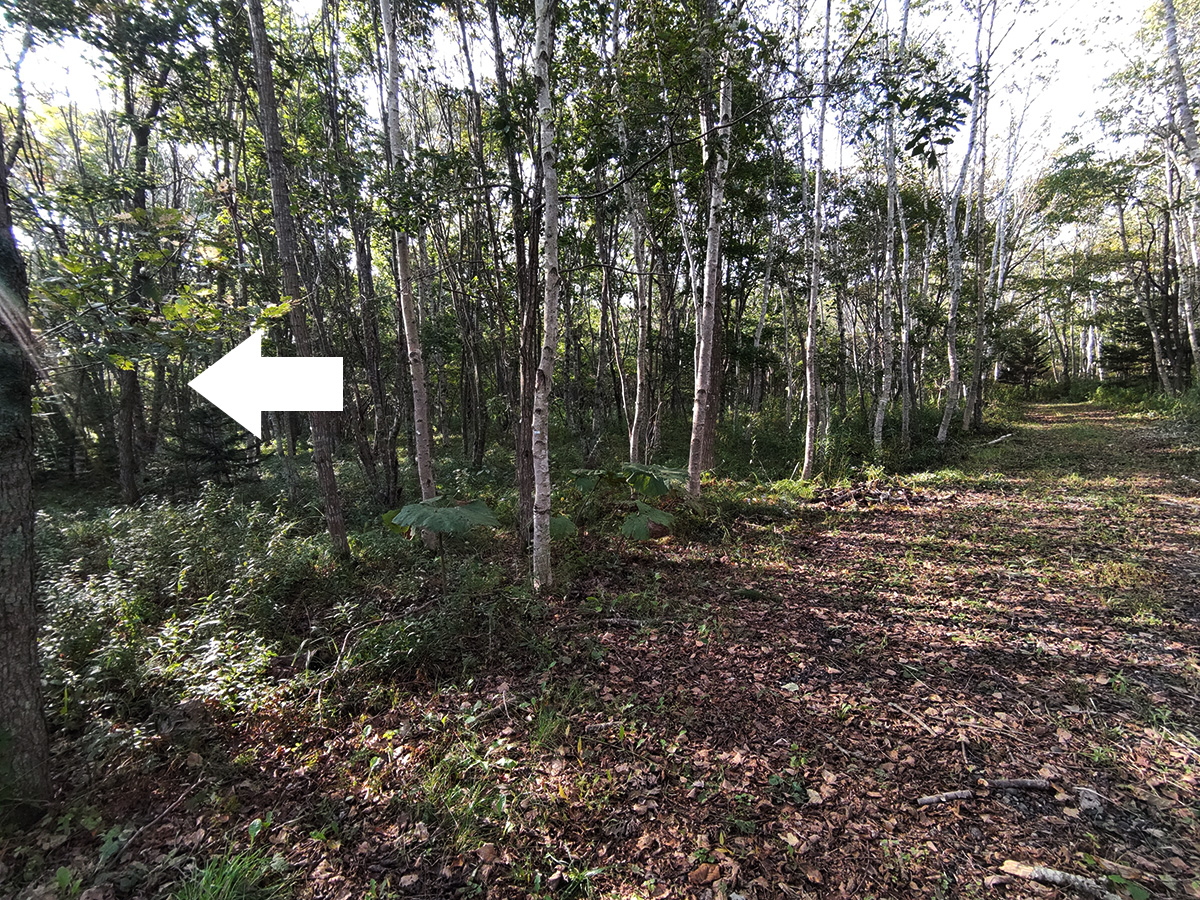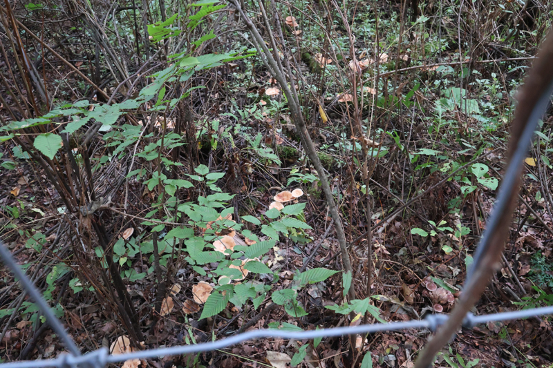 数十メーター歩いたとこでヤブに入り、キノコが生えていた場所まで200mほど進む。