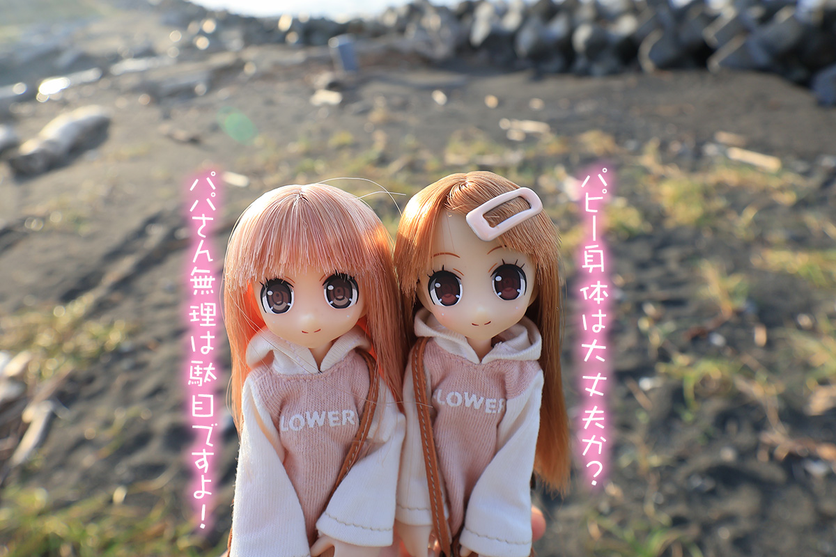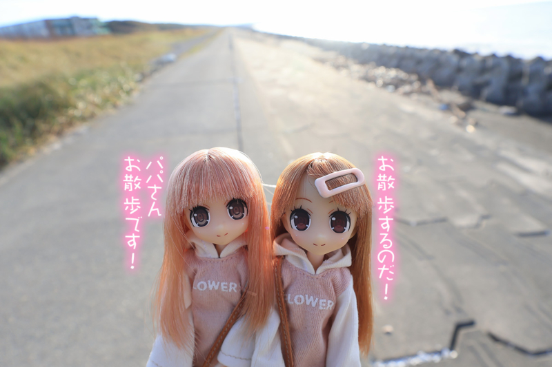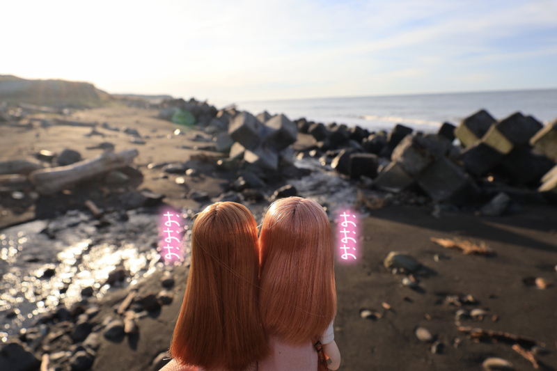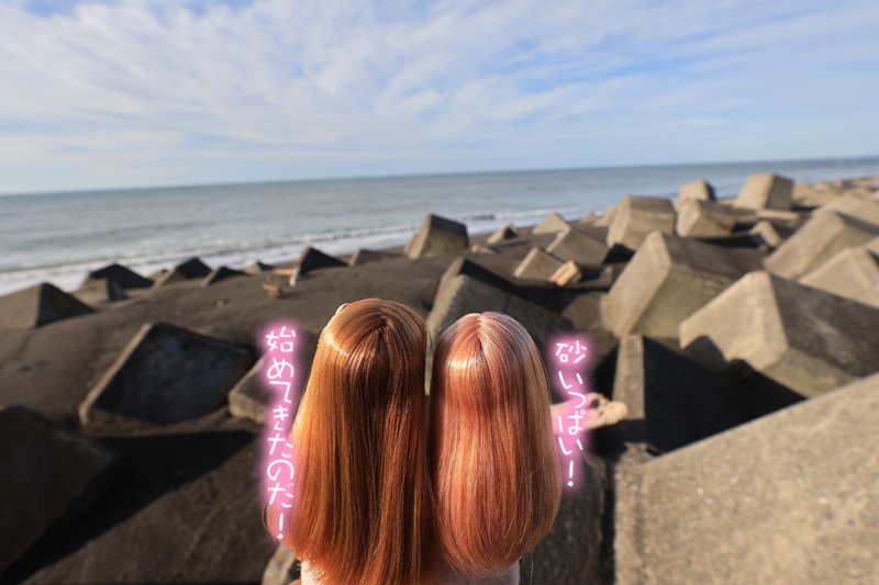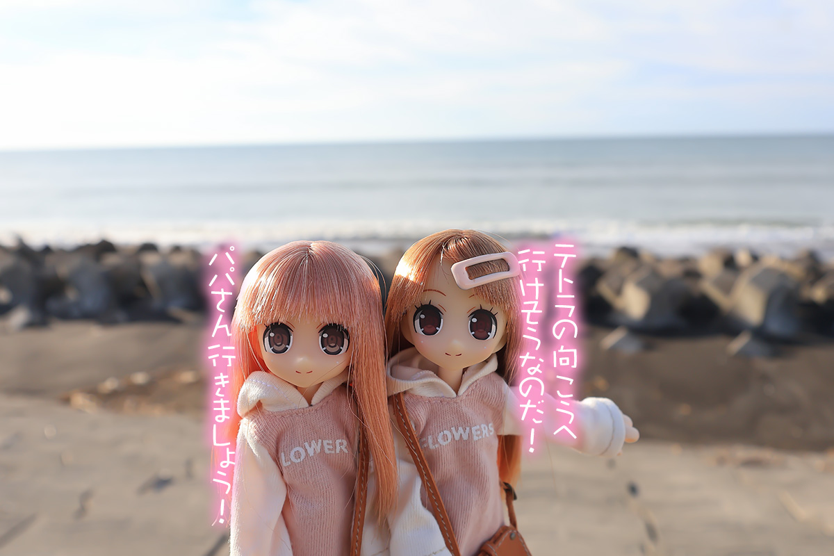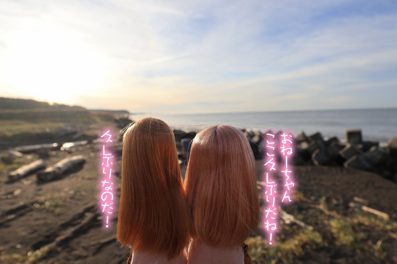 前回は山菜探しであまりに疲れてしまい、中途半端に終わってしまった姉妹のお出かけのお詫びとして、ちらっと海岸散歩に連れ出した。
