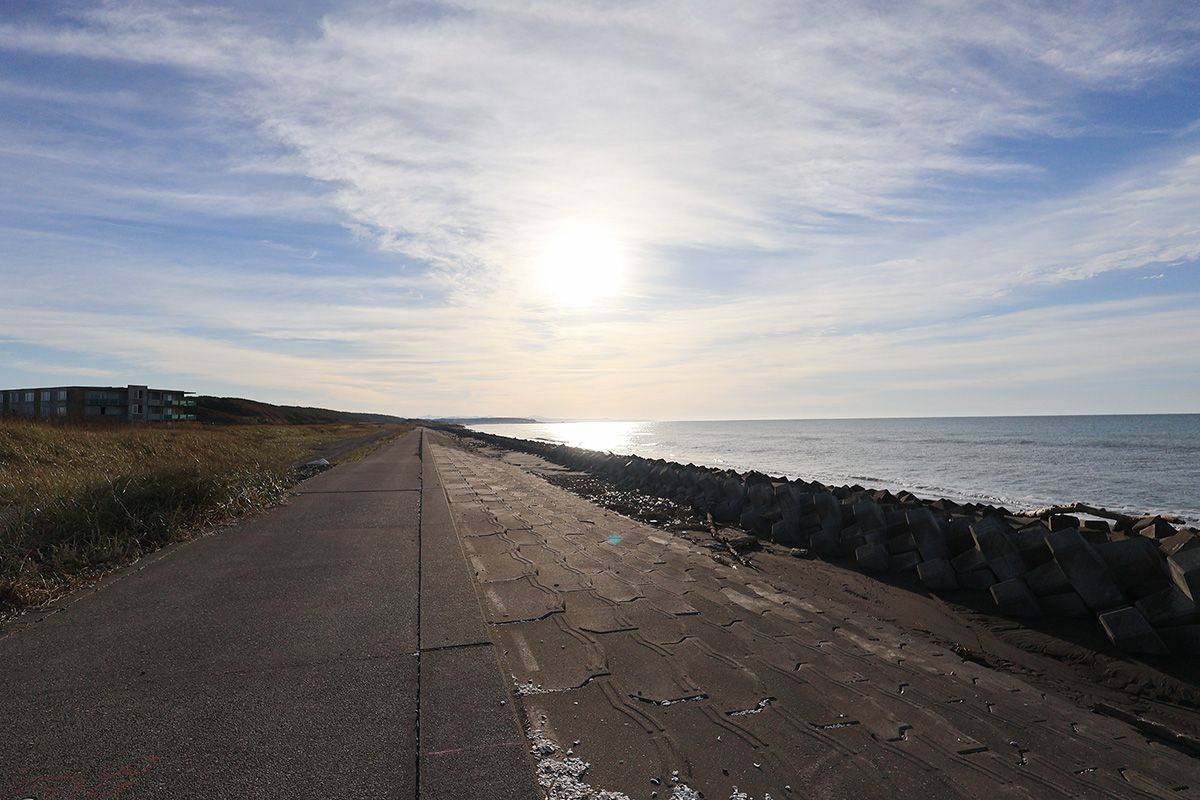 いつもはテトラに阻まれている海岸だが、大量の砂が蓄積されて通れるようになっていた。これは珍しい。