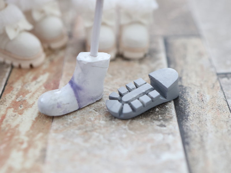 リルフェアリーが履ける白っぽいブーツが無かったので作ってみた。靴底はいつものように型をコツコツハンドメイドし、お湯丸+レジンキャストで複製。