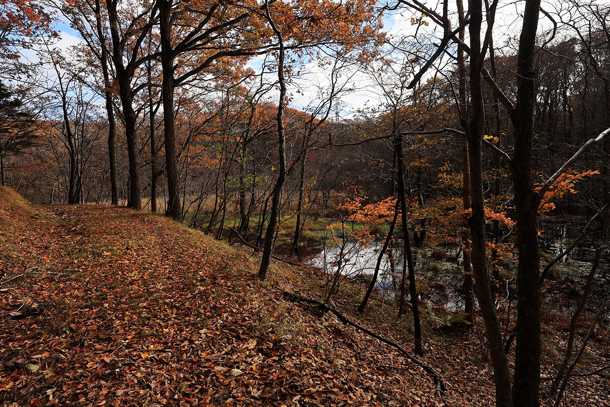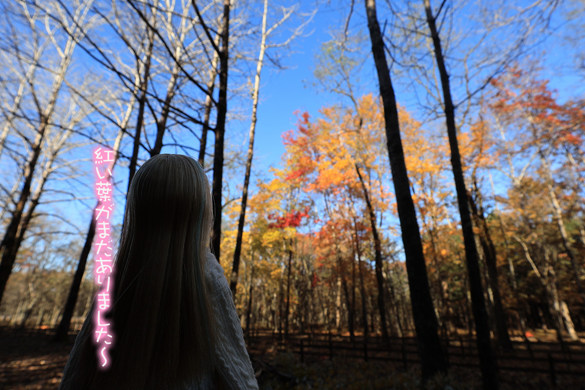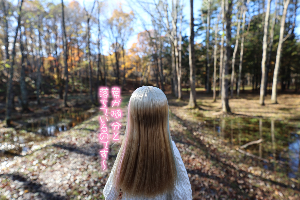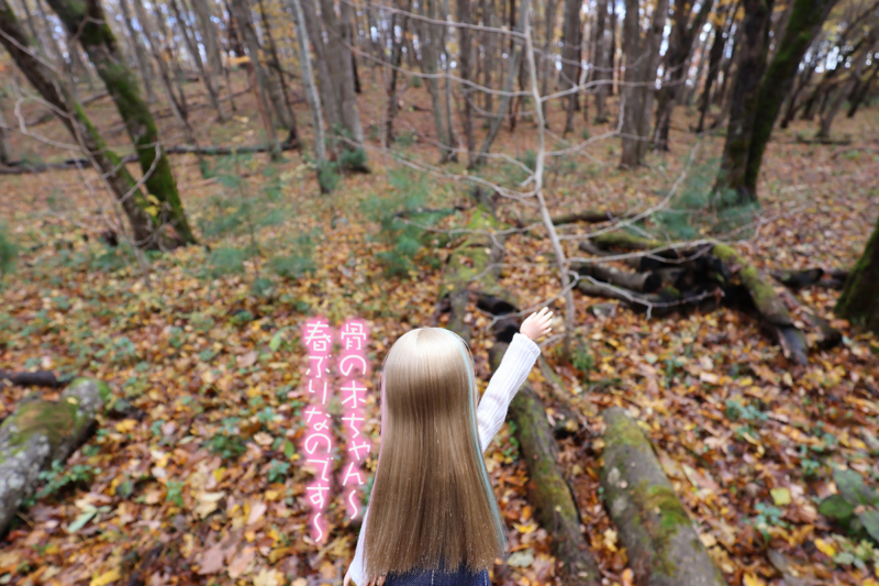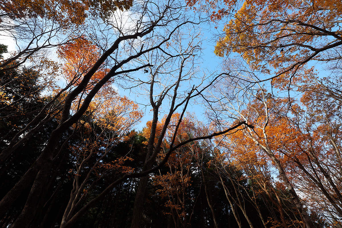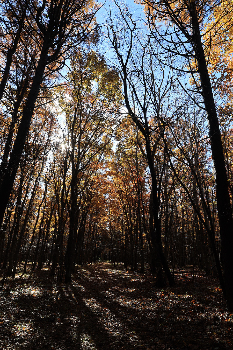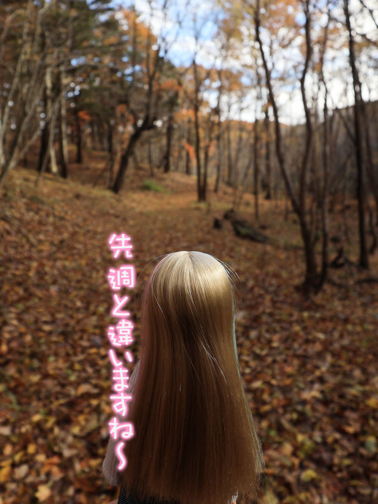 先週より確実に葉が落ちて明るくなった森。最後に紅葉するカラマツが黄色くい。紅葉も最後だなぁ。