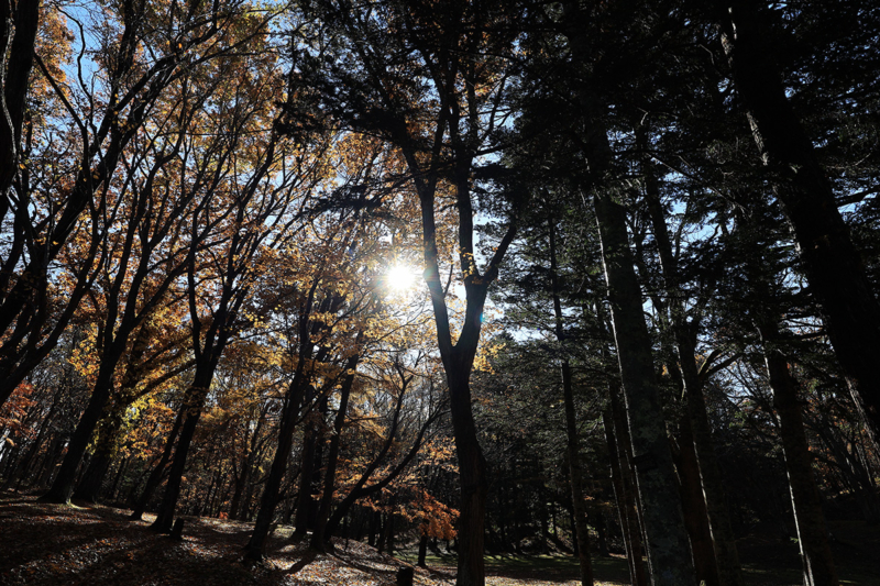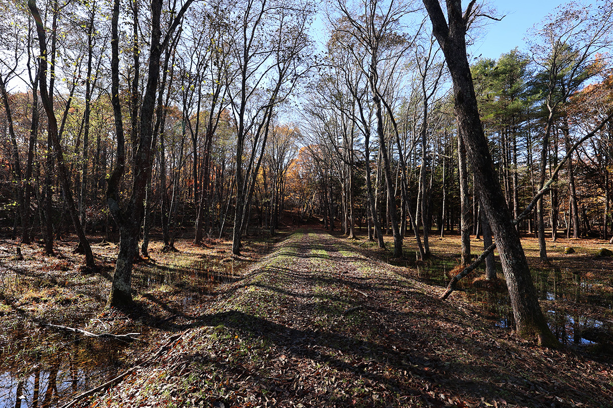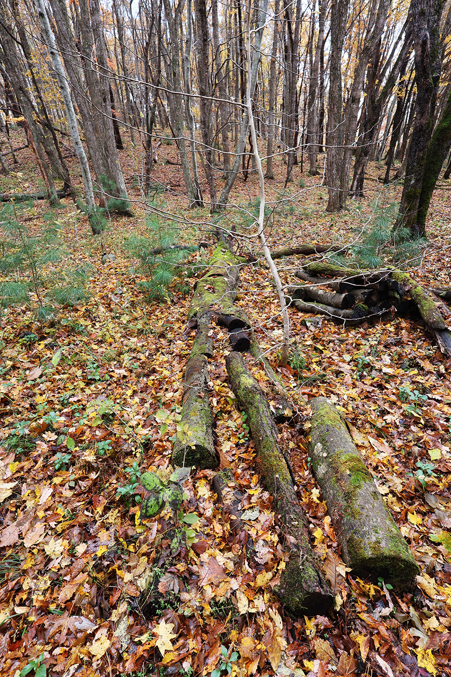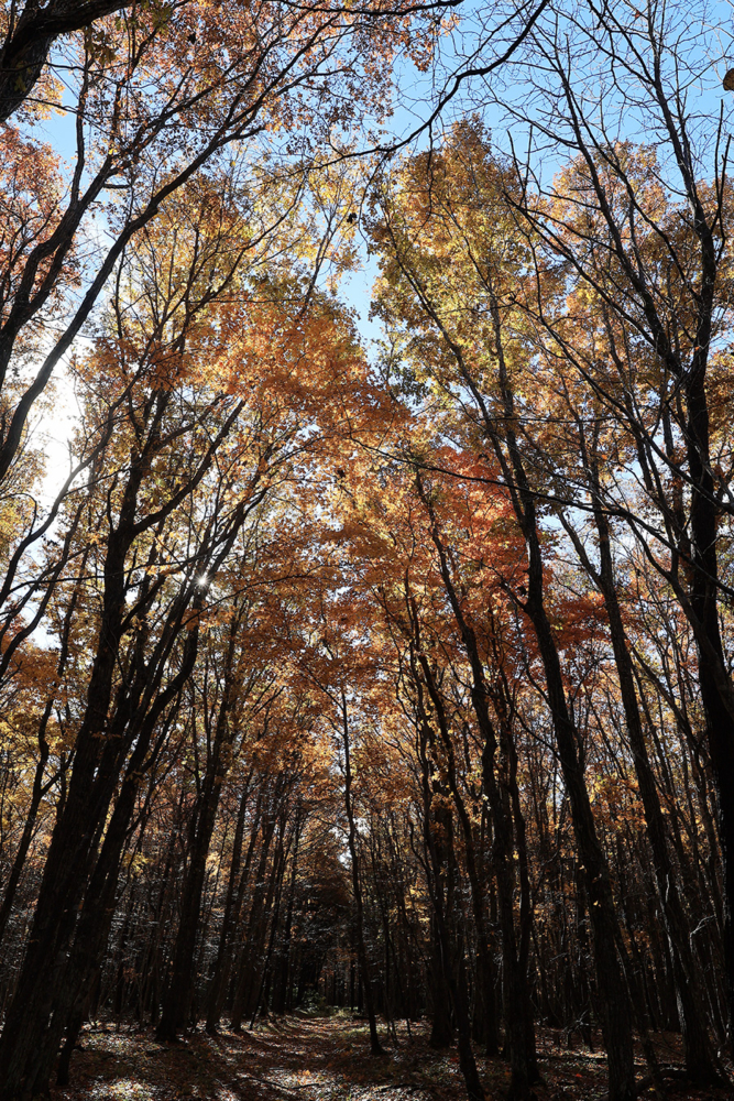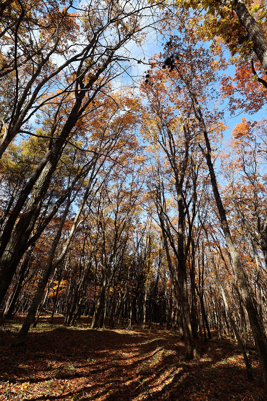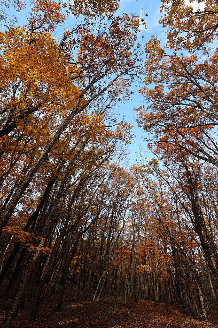 先週より確実に葉が落ちて明るくなった森。最後に紅葉するカラマツが黄色くい。紅葉も最後だなぁ。