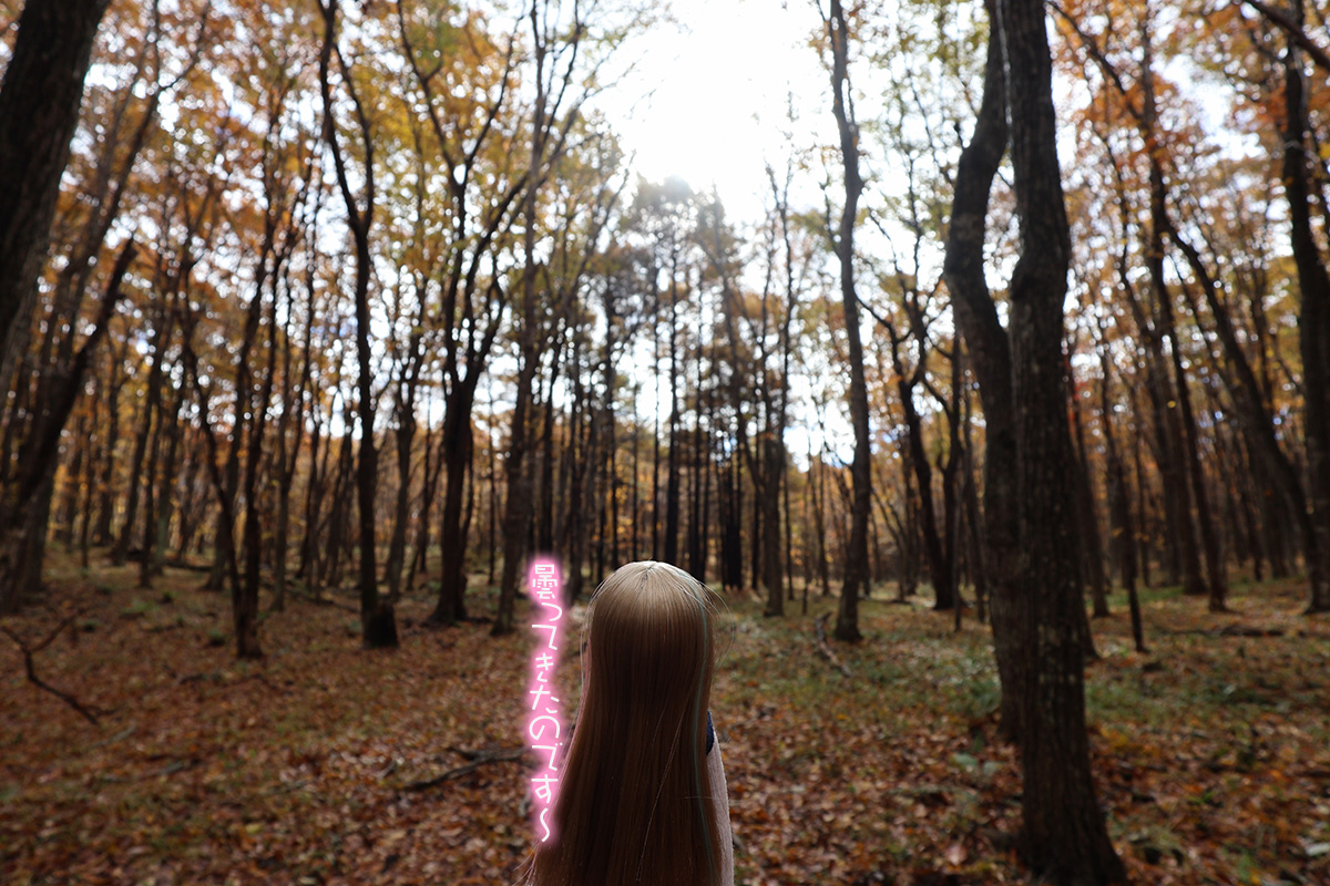 三連休二日目、朝から雨だったが10時頃に晴れ間が見えたので、あいかさんを連れて少しだけ森を散策した。