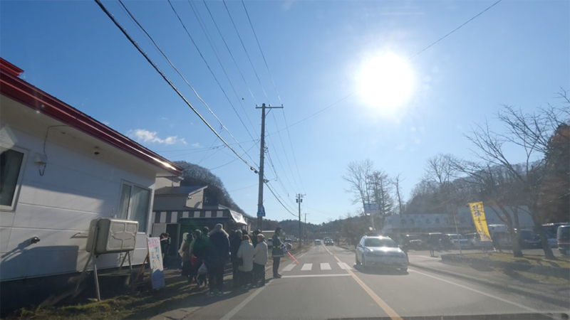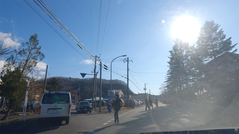 GoProからのキャプチャで画質悪いが、渋滞するわ満車だわの酷い状況。遠くの駐車場なら停められなくもないだろうが、この混雑の中を歩くのは辛い。人混みが嫌いな上に今回は体調が悪いこともあって気を使いながら歩く必要が有る。