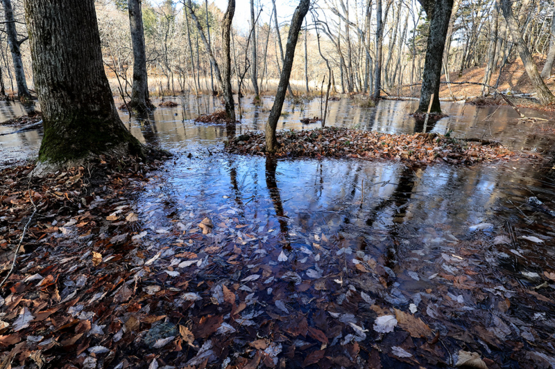 紅葉した葉が凍ると綺麗なんだが、今年は割と暖かったのよね( ・ิω・ิ )
