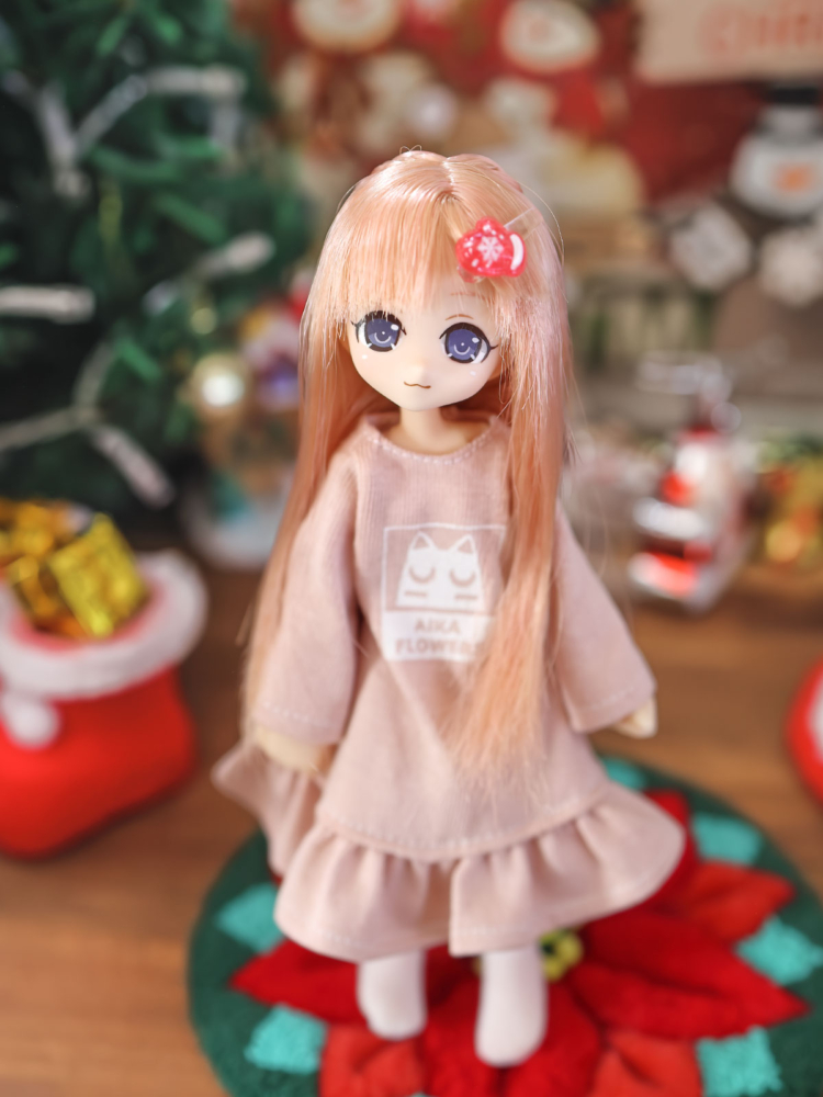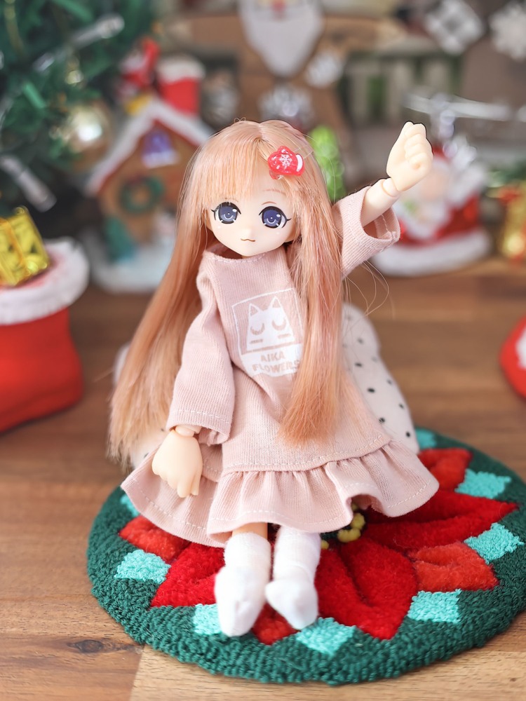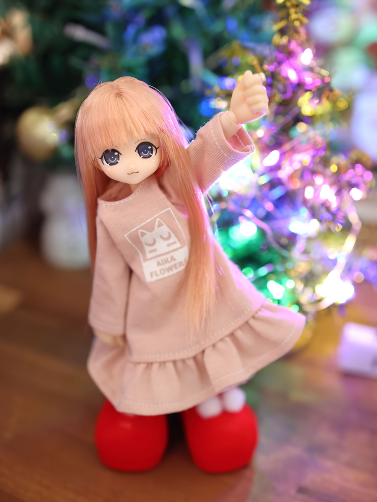 クリスマスお出かけは姉妹の担当なので今年もこれを着る。これが秀逸なのは生地厚のデフォルメ感かな。1/6までは生地を薄くし精密さを考えるが、姉妹サイズになると逆に厚さを逆手にとった方が良いと思うのよ。ぬいぐるみっぽい感じって言うのかな。そんな可愛さがリルフェアリーの良いところ。