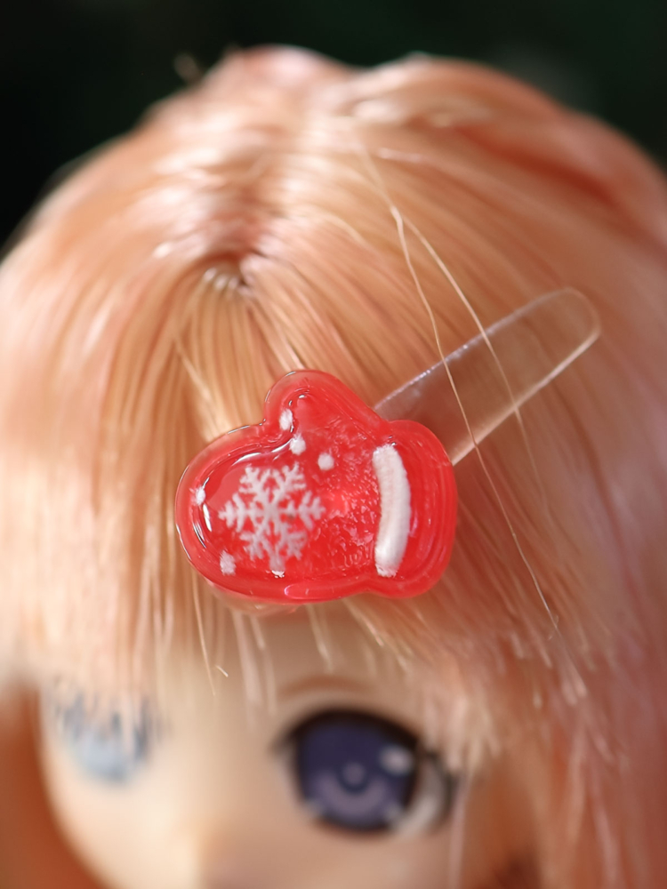 昨年作った雪だるまヘアピンと。作るのは簡単で、軽く湾曲した板パーツをお湯丸型で作るだけ。パッチン金物はお好きな針金を使いましょう。オススメはゼムクリップ。硬めなので曲げるのが大変だけど強い。メッキの変色を嫌うならステンレス針金とかも。