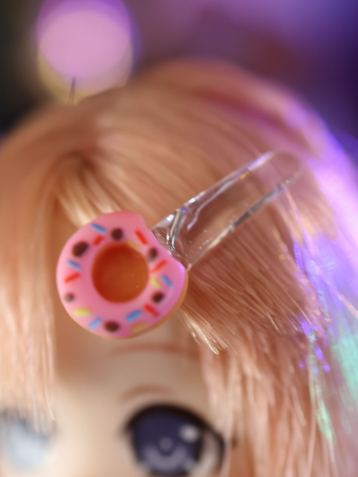 百均ネイルアート用のパーツを使っている。ドーナツがピンボケ&軸が中で斜めになってしまっている。これはレジン型の作りが悪かったので後ほど改善( ・ิω・ิ )