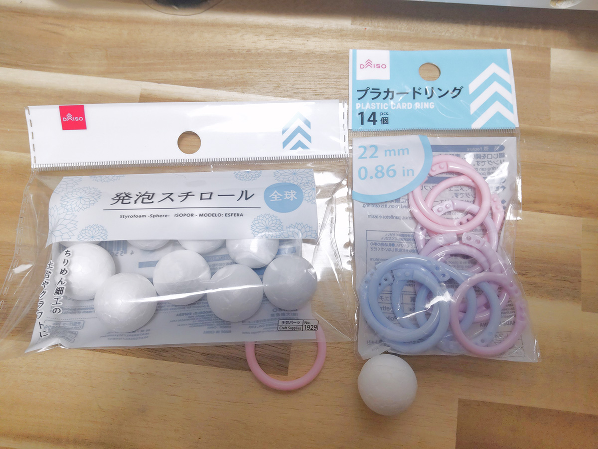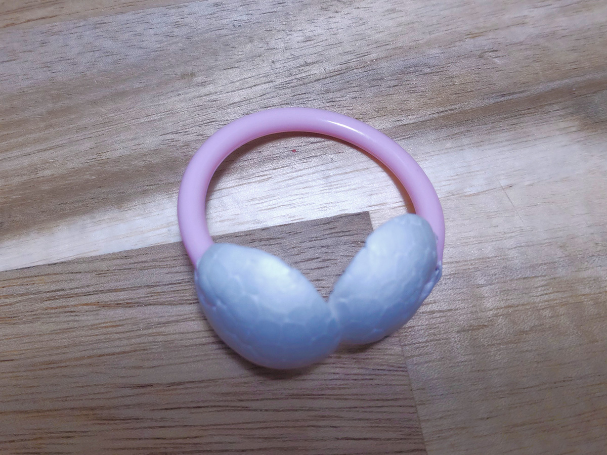 プラカードリングは接続部分をニッパー等でカットするだけでリルフェアリーサイズのカチューシャになる優れ物。今回はそれに発泡スチロールの玉を使って作る。