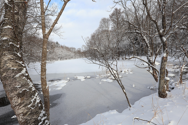 沼の水が凍る前に雪が降ると蓋になって水温が下がらないんだよな。完全に凍るまではまだ少し掛かるかもしれない。