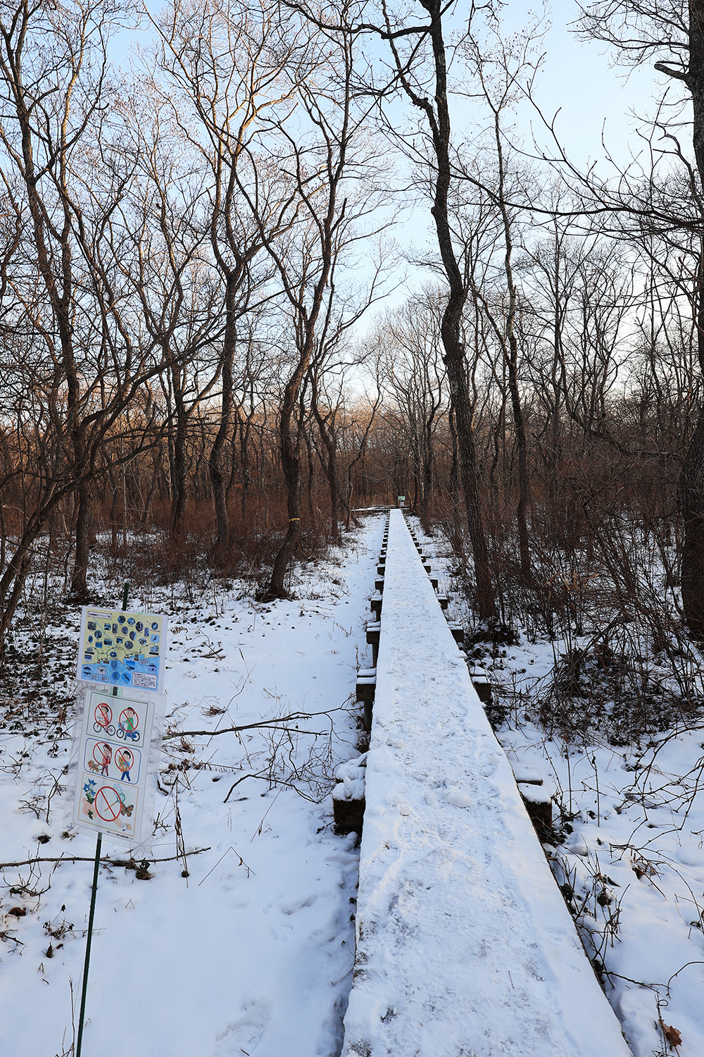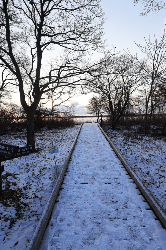 湖畔を避けて通るルートから湖畔へ出るこの位置が、ウトナイ湖木道のベスト撮影スポットだと思う。