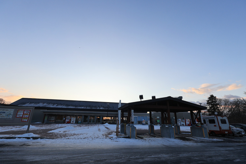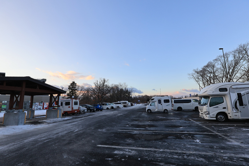 道の駅が併設されているので、早朝というのにたくさんの車が停まっていた。そのうち結構な割合が車中泊のようだ。キャンピングカーはFFヒーターを搭載しているだろうから寒さを感じないだろうが、一般車はどうしてんだろうな。
