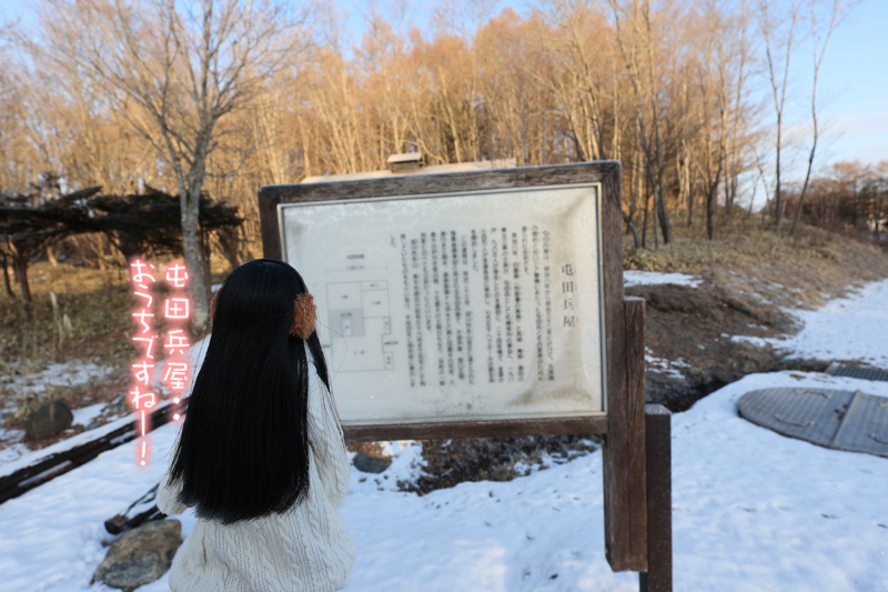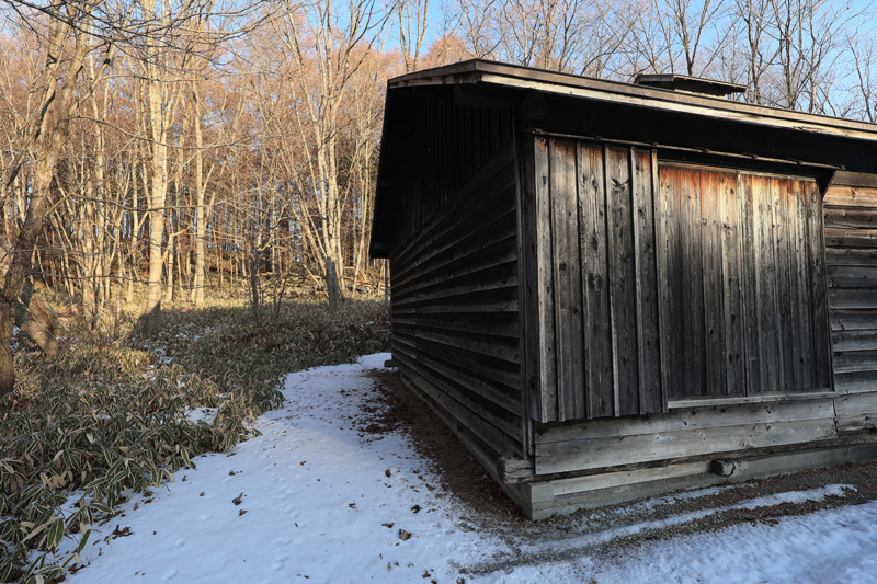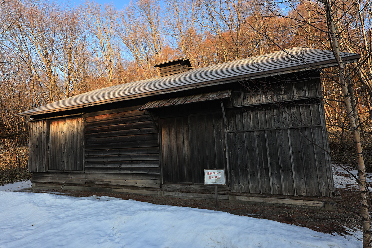 屯田兵屋。明治八年から三十二年にかけて北海道開拓と対ロシア警備にあたった屯田兵と家族のために造られた住宅らしい。これは明治二十三年に旭川に建てられたもので、昭和五十六年まで住宅として住んでいたものを貰い受け、移設したとのこと。