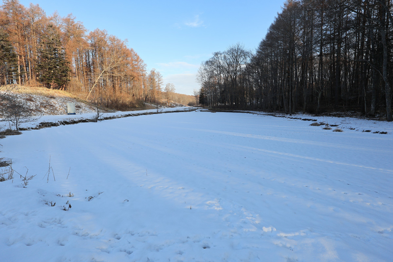 更に歩くと池や川がある開けた場所に出る。