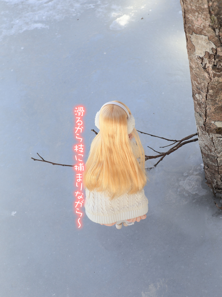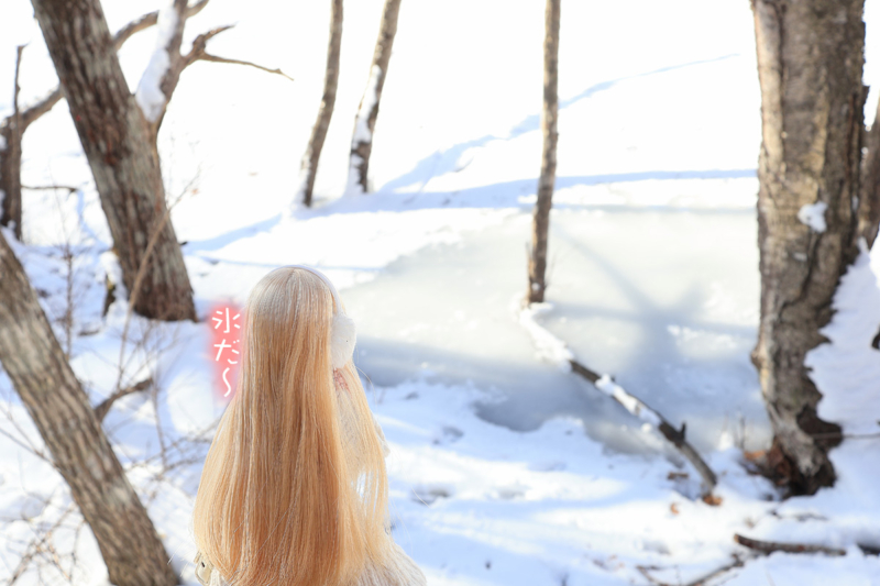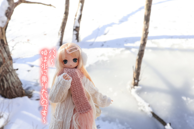 小沼の上に突き出した、普段は乗れない枝の上で写真撮影。今日は姫ちゃんらしいフリフリ衣装(*´ω`*)