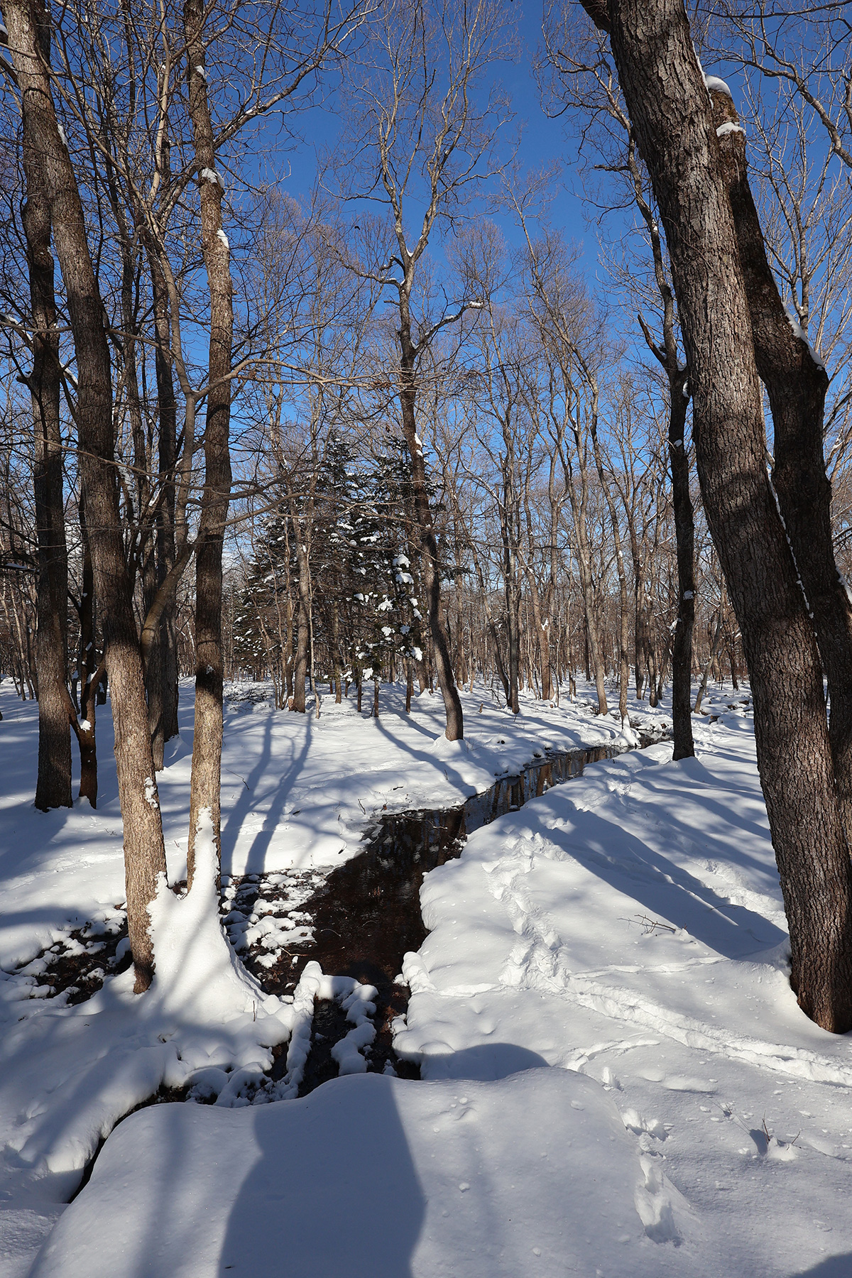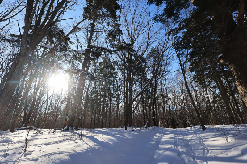 結局あっちへウロウロこっちへウロウロと森のを歩いた。奥へ入れないのは残念だけど、どちらにしても雪を漕いで歩くのは大変。これからの雪は解けないし、積もるだけ積もって春を待つことになる。