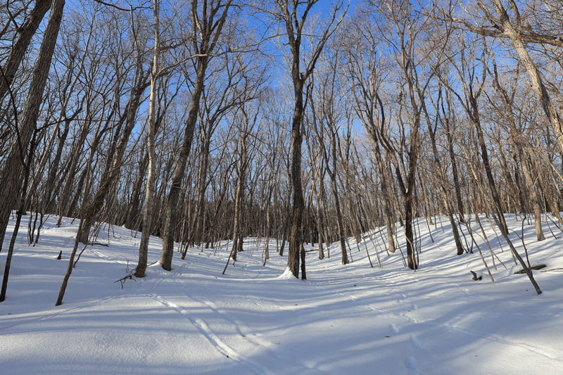 ショベルの跡が森の奥へ続いていた。クマは怖いが、この気温なら活発に動いてはいないだろう・・・と思いたい。