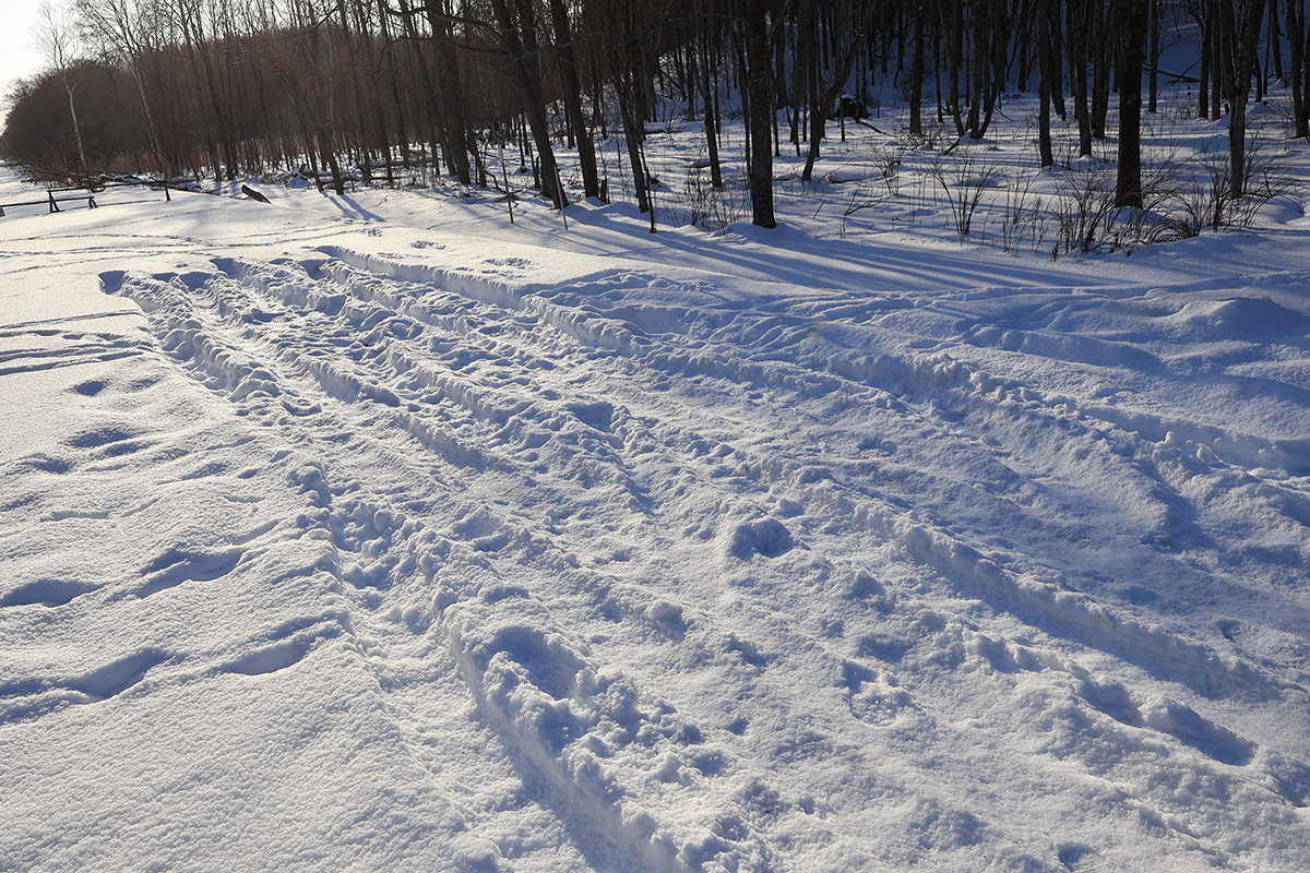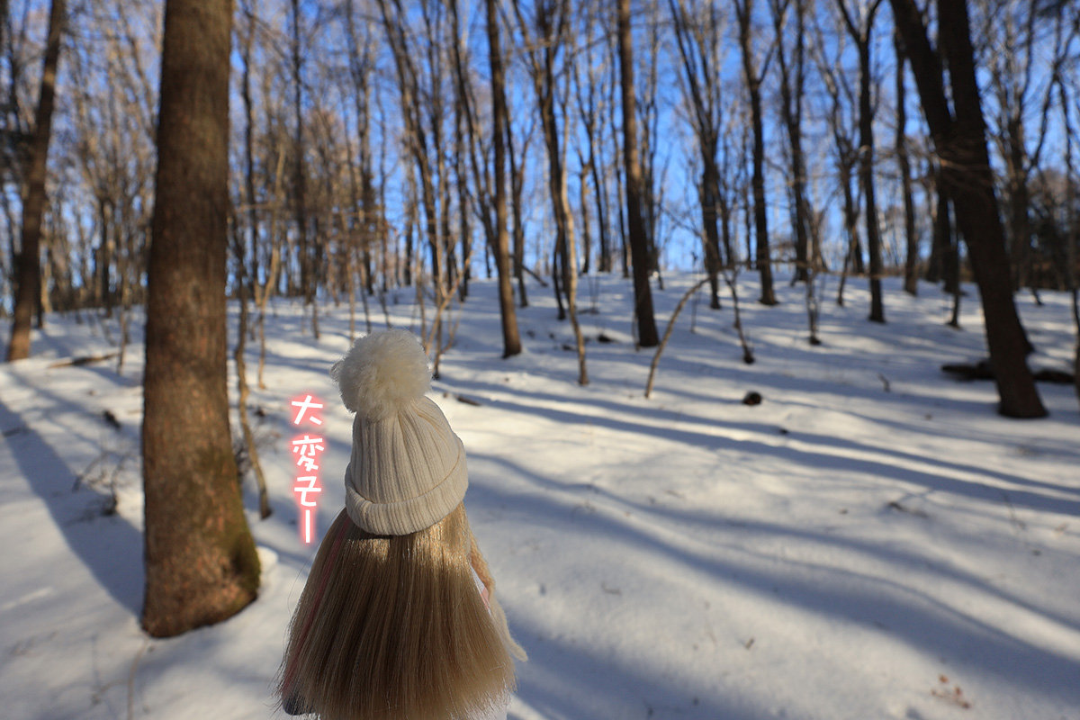 いつもは溶けている俺の好きな道も雪深いままだった。寒いんだなぁ。