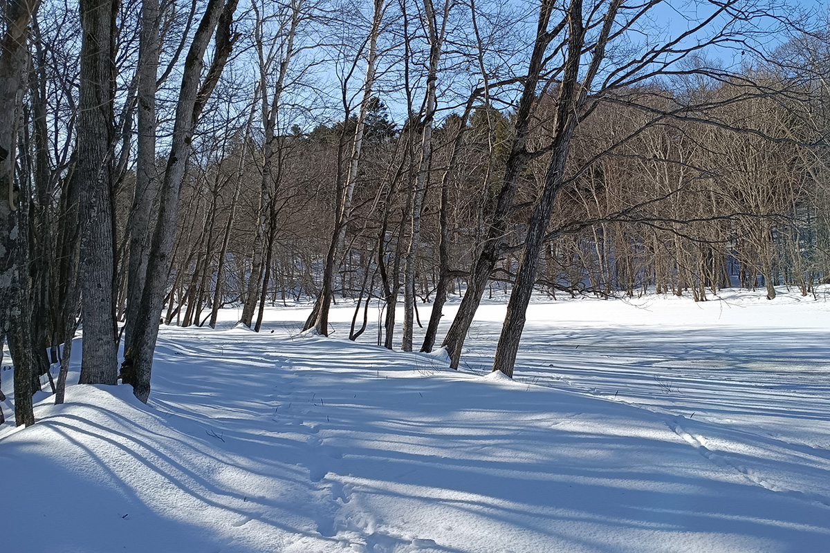 沼のあたりは直射日光+無風になることが多いので、マイナス気温でも暖かい。
