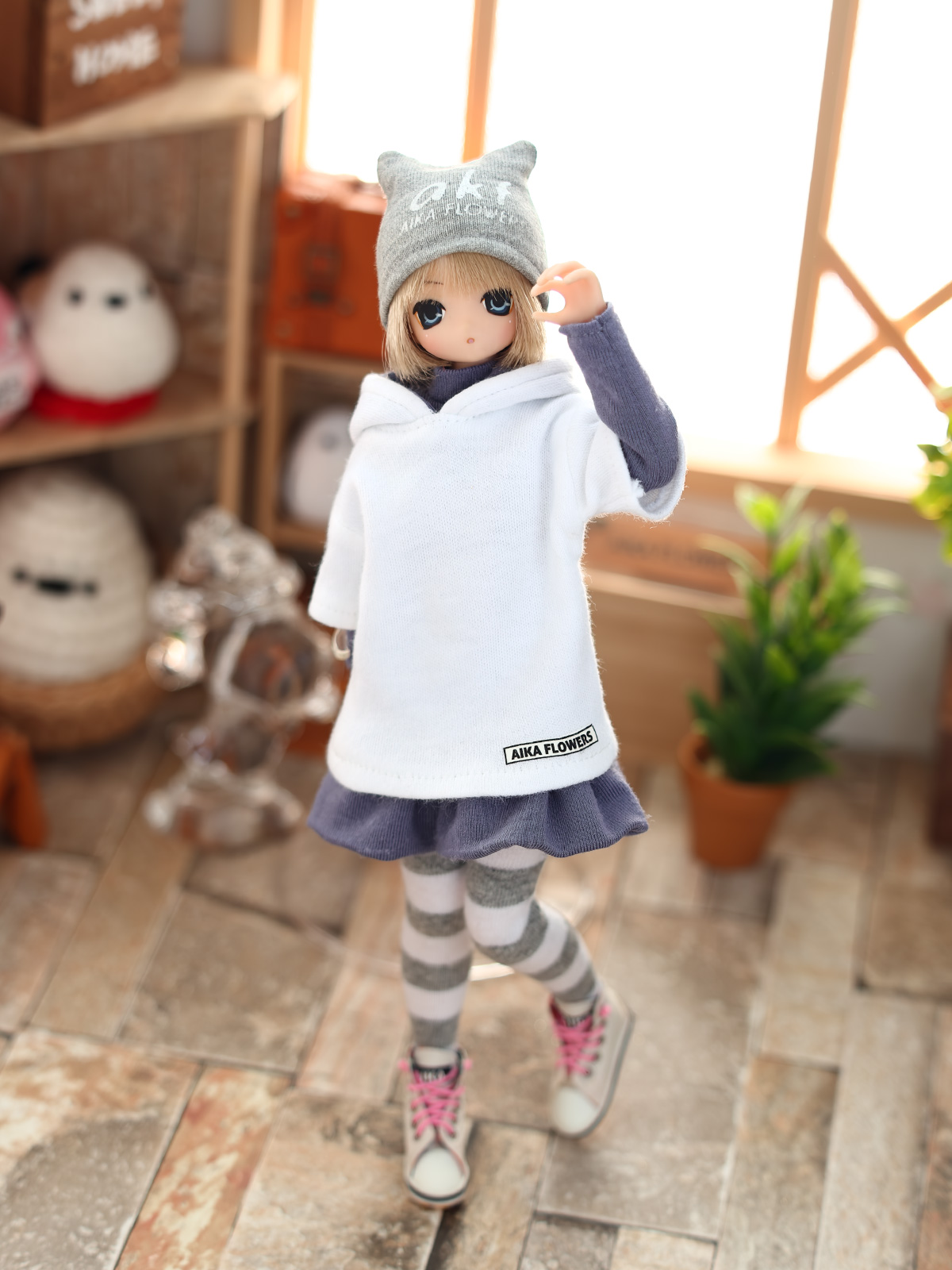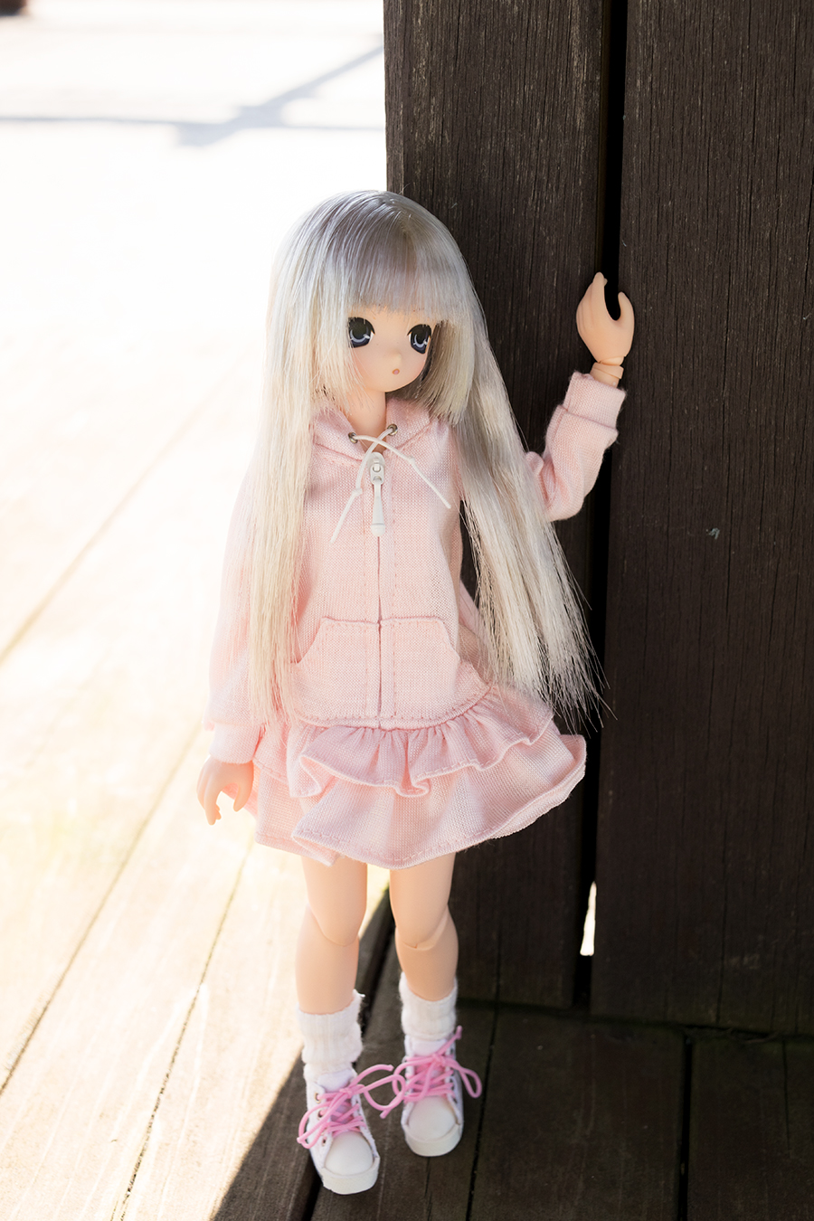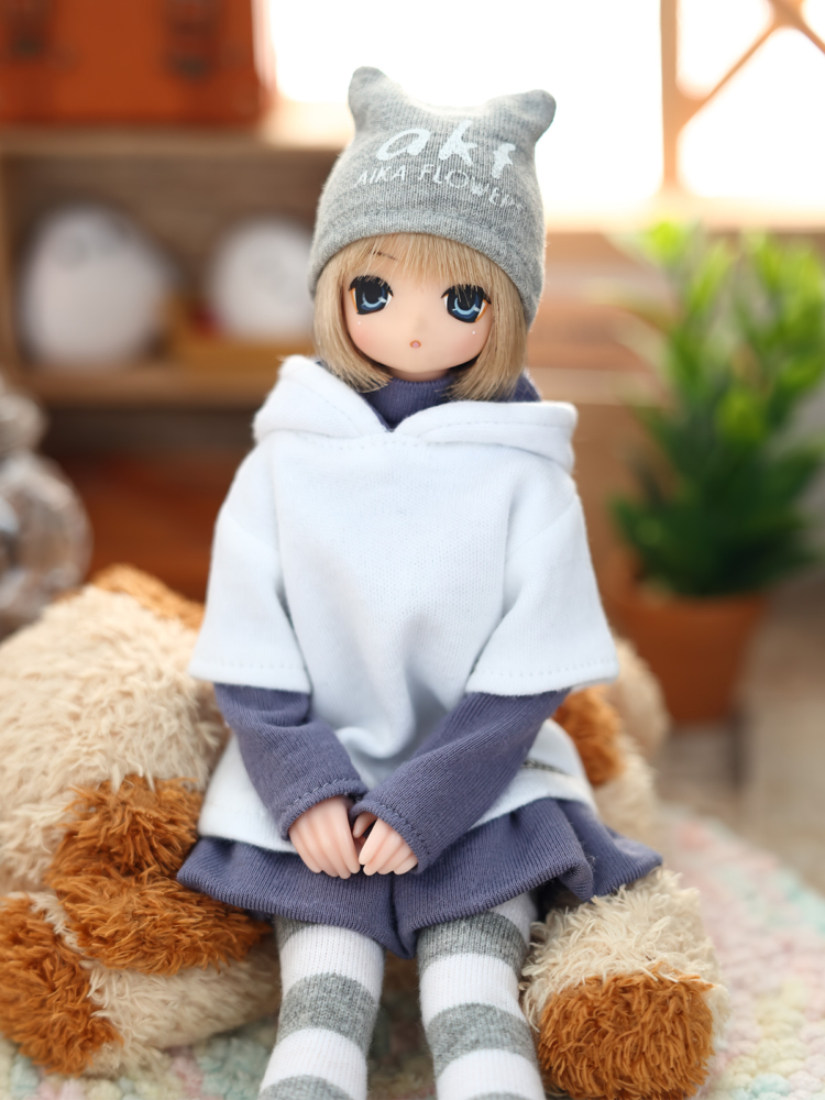 アゾンさんのパーカーワンピも同様で、何もしないと広がってこようとする( ・ิω・ิ )