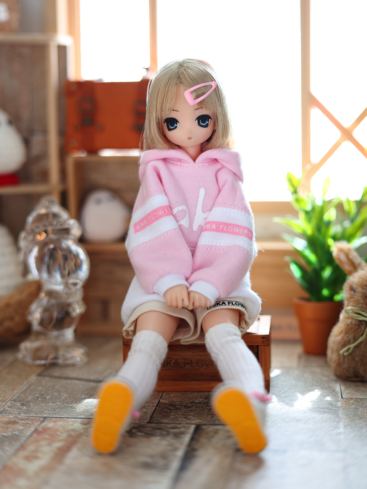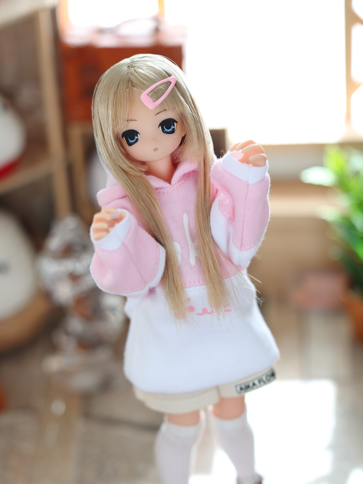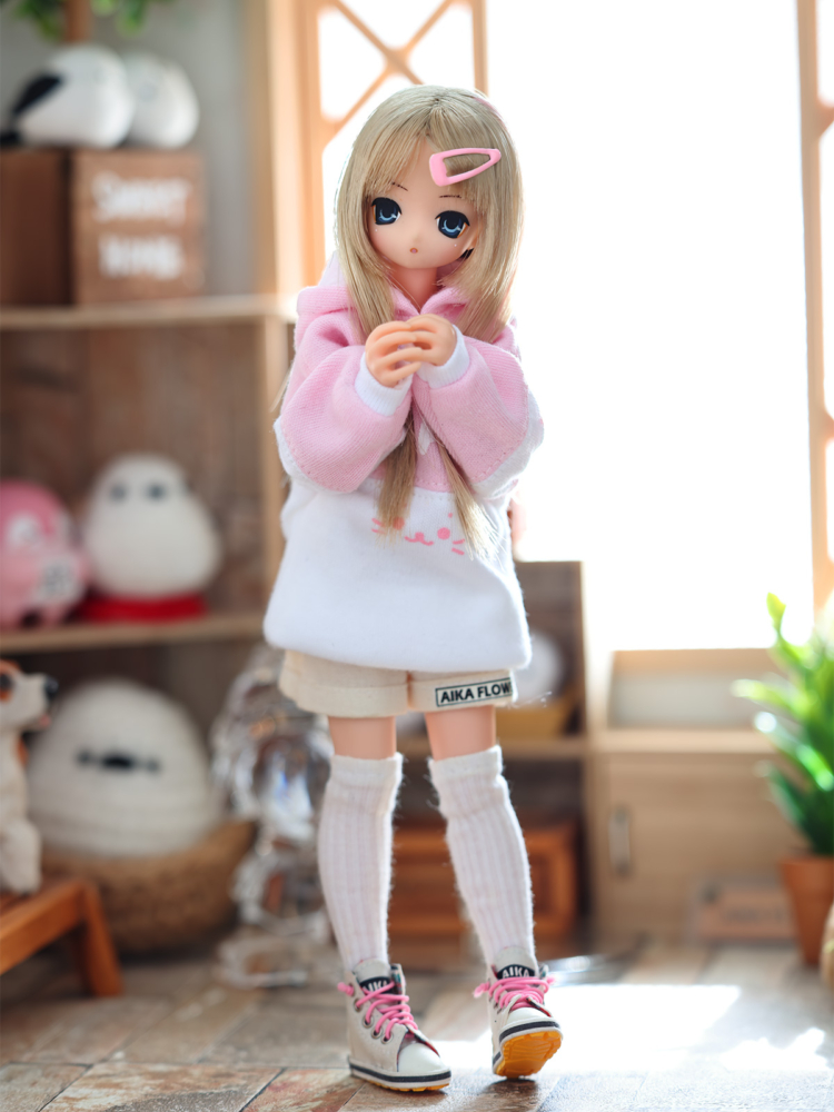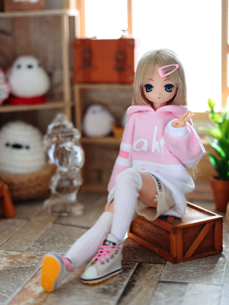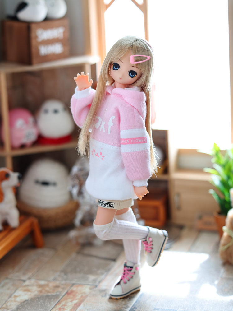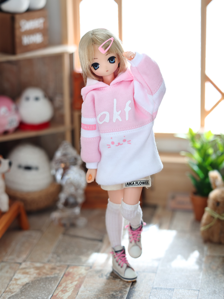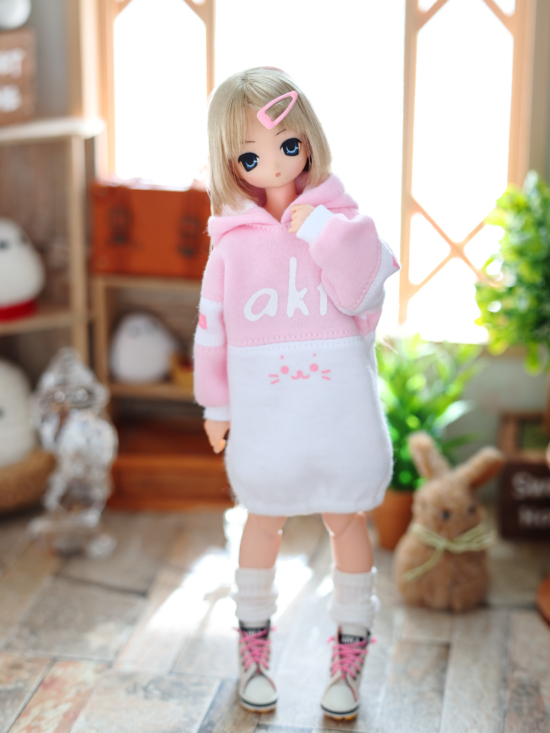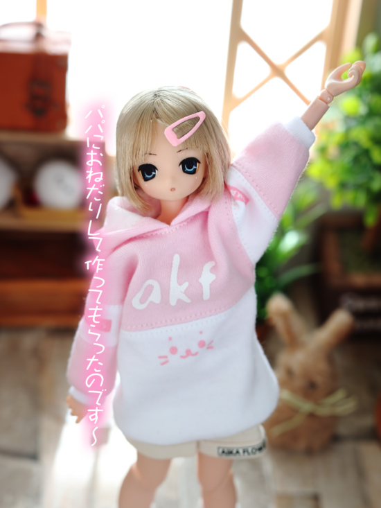 ピンク色のパーカーが着たい!と、あいかさんのお願い。そういえばこの子にピンク系はあまり作ってないなと、新型ビッグパーカーの試作を兼ねて、少し凝ったパーカーを作ってあげた( ・ิω・ิ )