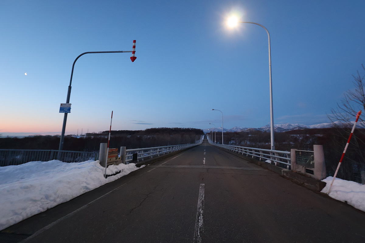 広尾町のいつもの橋なのだが、まだ太陽が上がっていない(;´Д`)