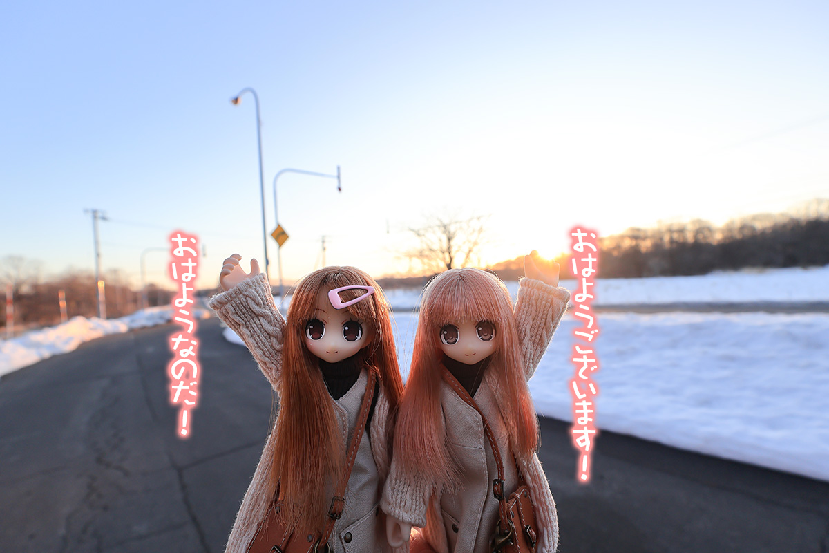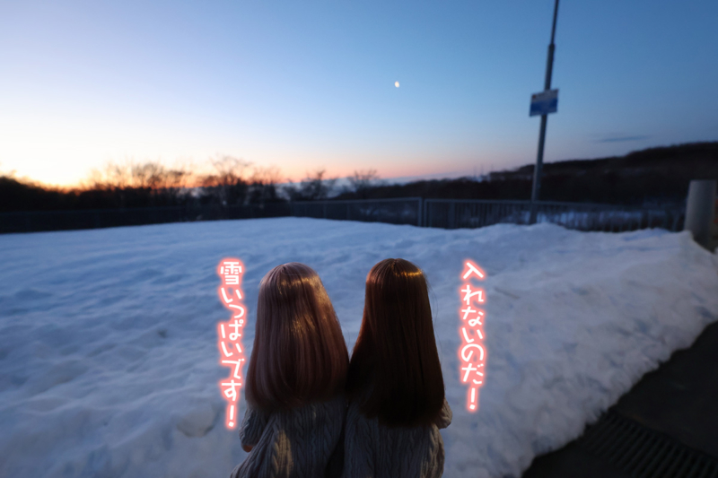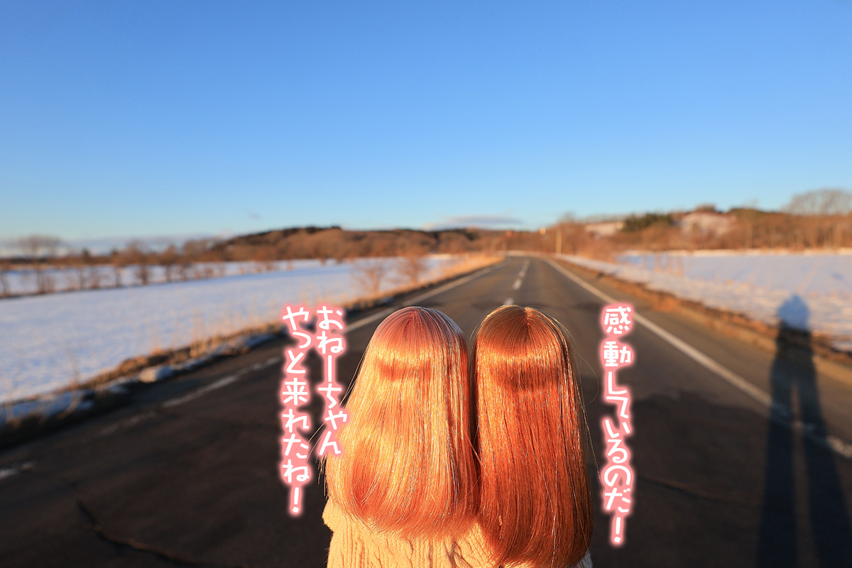 広尾町以降、雪景色ではあるが気温はプラスで暖かい。ただ、風が強く冷たい。姉妹にカーティガンを着せるか迷ったが、着せて正解だった。