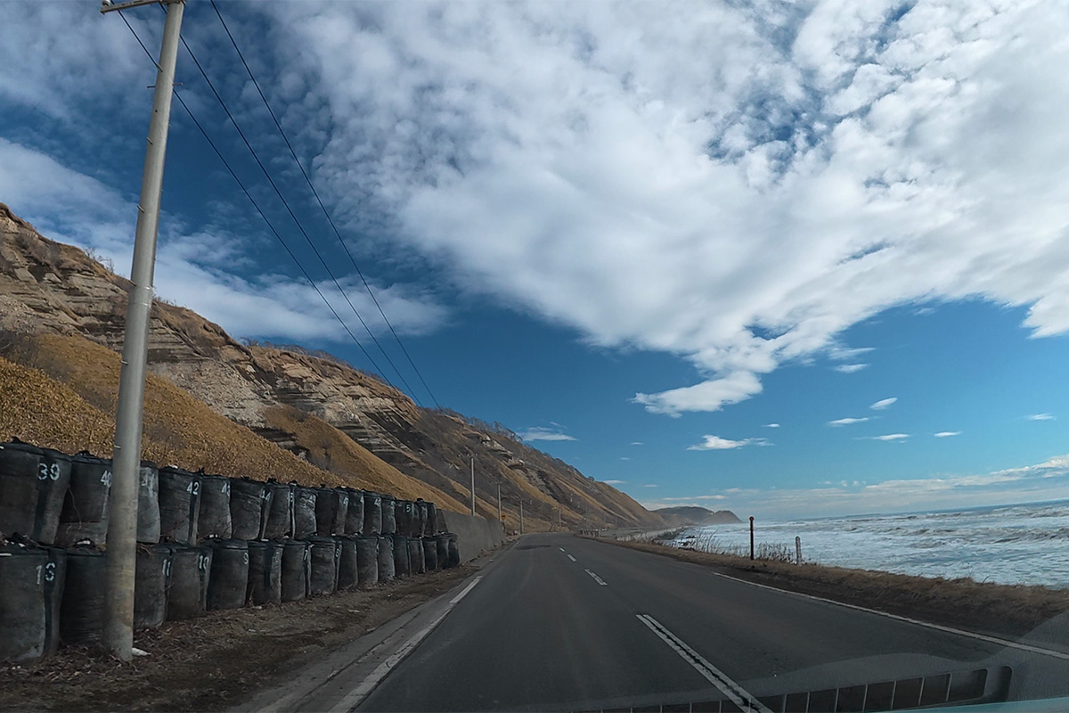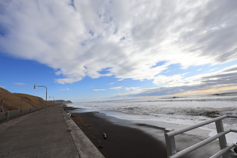 広尾のあたりだったかな。わかるだろうか、波が道路よか高いのよ・・・延々とこんな状態でちょっと怖かったよ(;´Д`)