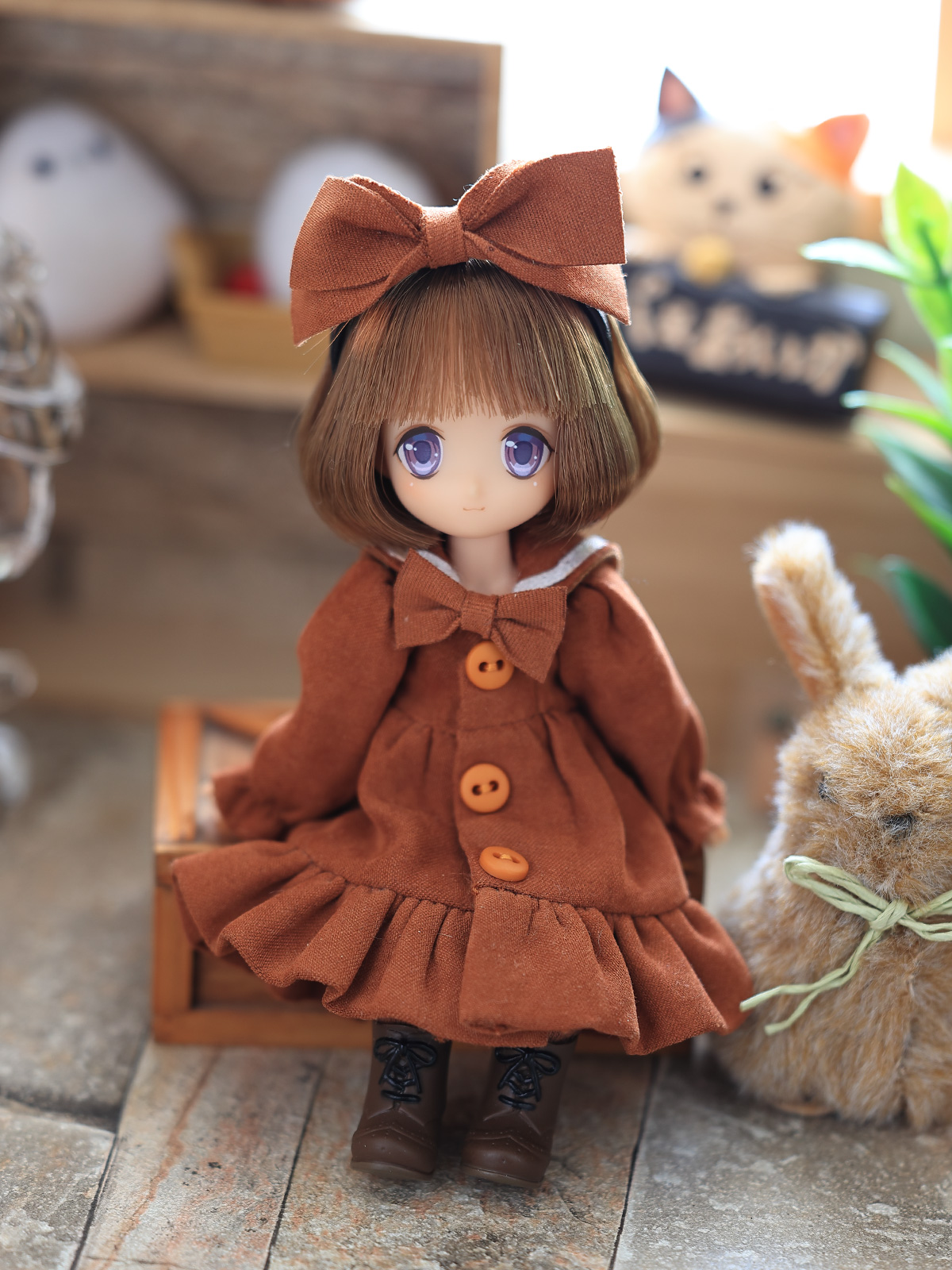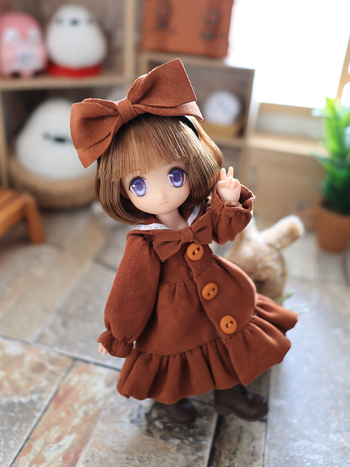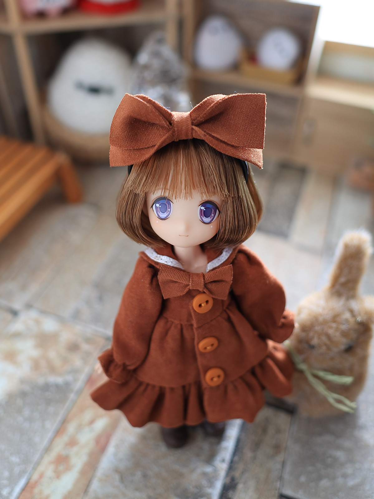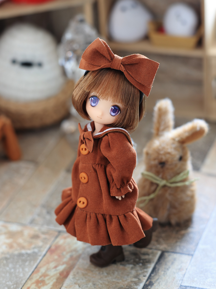 ネイリー姉妹も同じ型のセーラーワンピを持っているが、EMMAちゃんが先。生地は服から取ったベルベットなので同じものは入手困難。服と同じ生地ってどこで売っているんだろうな。日暮里なら有るのかもなぁ(;´Д`)