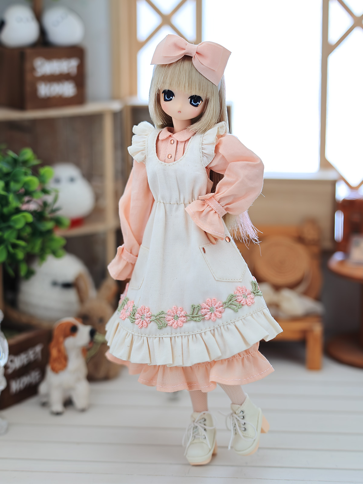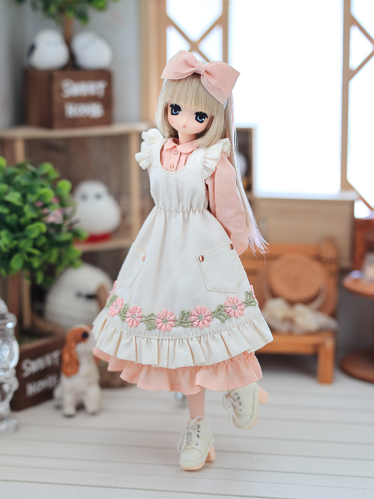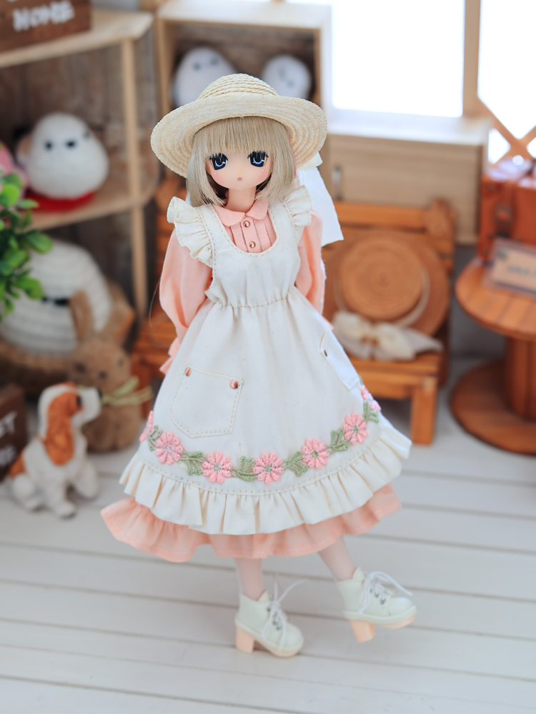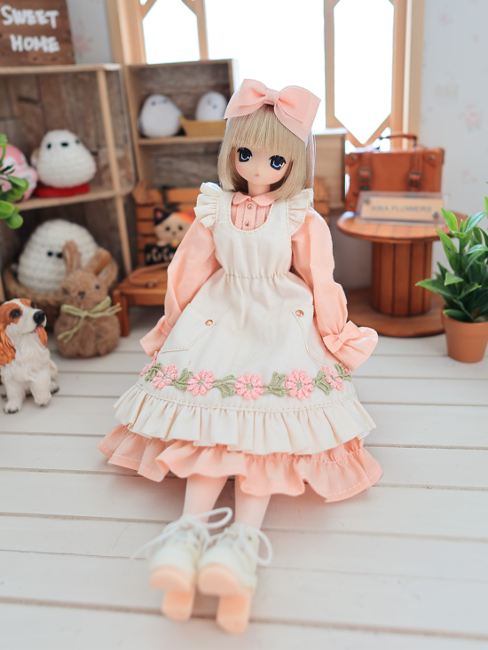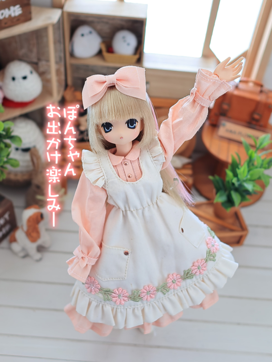 ぽんちゃんやあいかさんはオーバーオールやサロペットってなイメージだけど、こういう女の子女の子な服も似合う。あいかさんにも作ろうかなと考えているが、エプロンを黒かネイビーで、中を白で作るのはどうかなぁとか。ゴスっぽくなるかな。それはそれで可愛いかもだな( ・ิω・ิ )