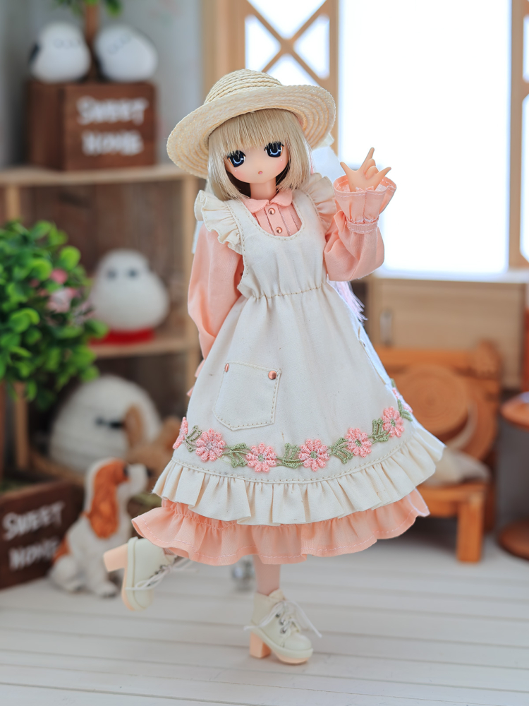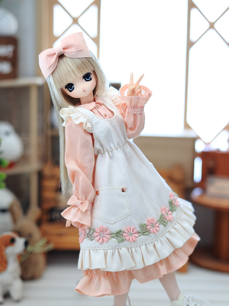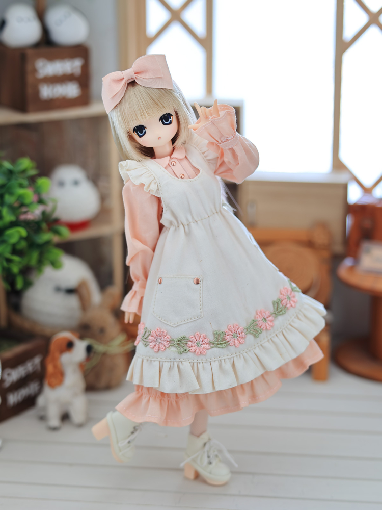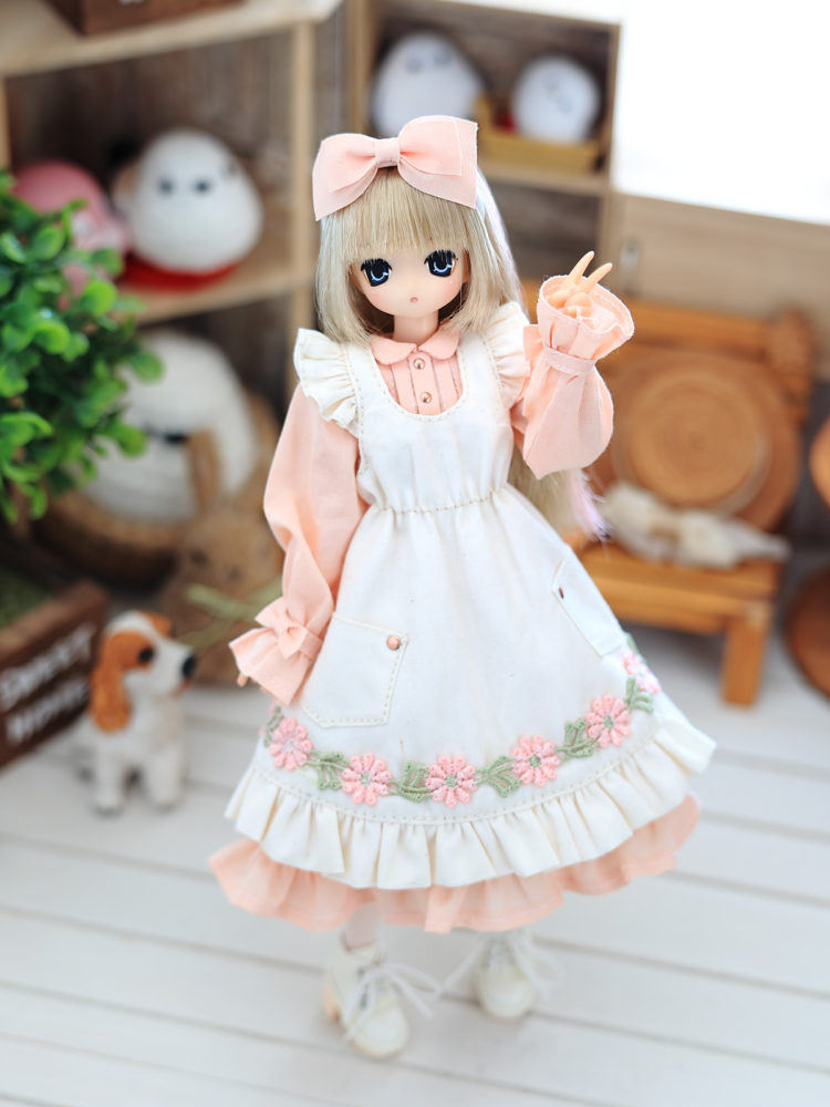 ぽんちゃんやあいかさんはオーバーオールやサロペットってなイメージだけど、こういう女の子女の子な服も似合う。あいかさんにも作ろうかなと考えているが、エプロンを黒かネイビーで、中を白で作るのはどうかなぁとか。ゴスっぽくなるかな。それはそれで可愛いかもだな( ・ิω・ิ )