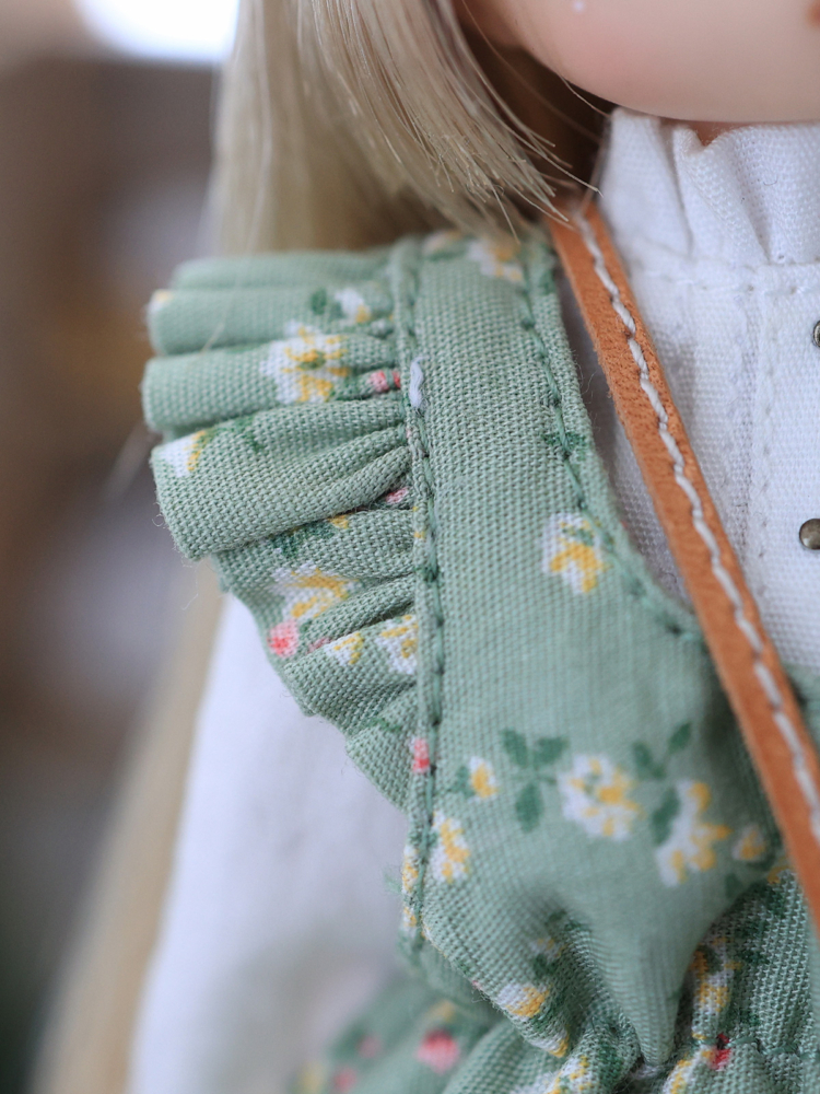基本的にはぽんちゃんと同じ型紙だが、エプロンだったものをジャンスカに見立てた感じで。前から見りゃ同じだけどね( ・ิω・ิ )