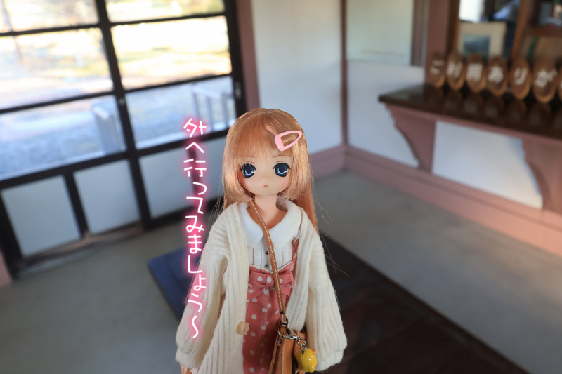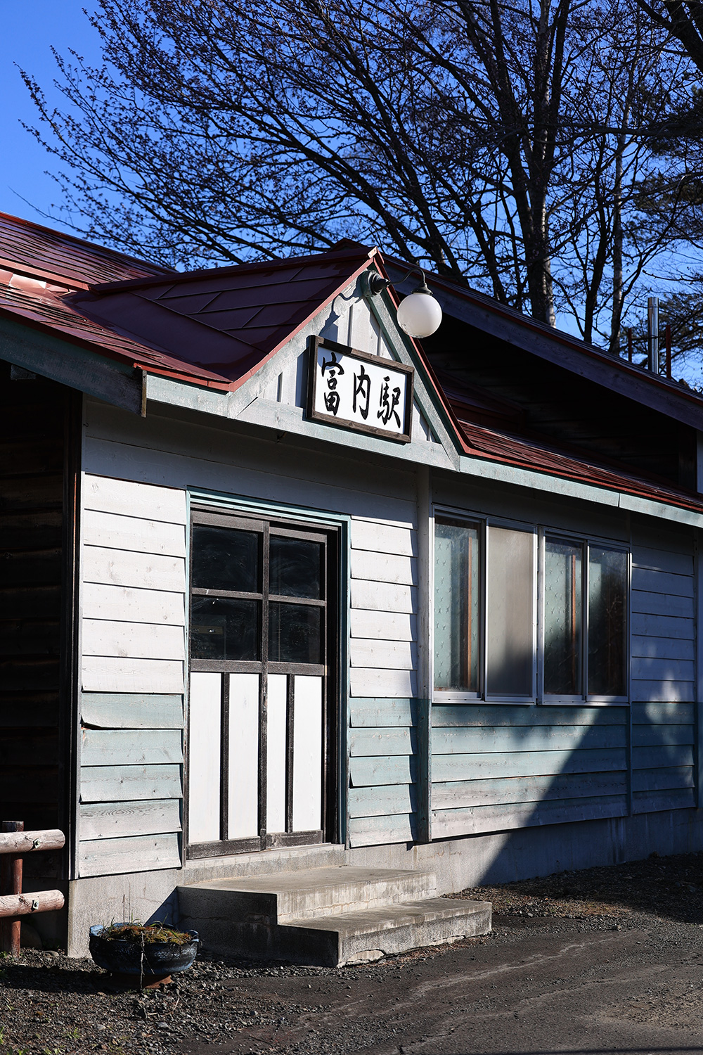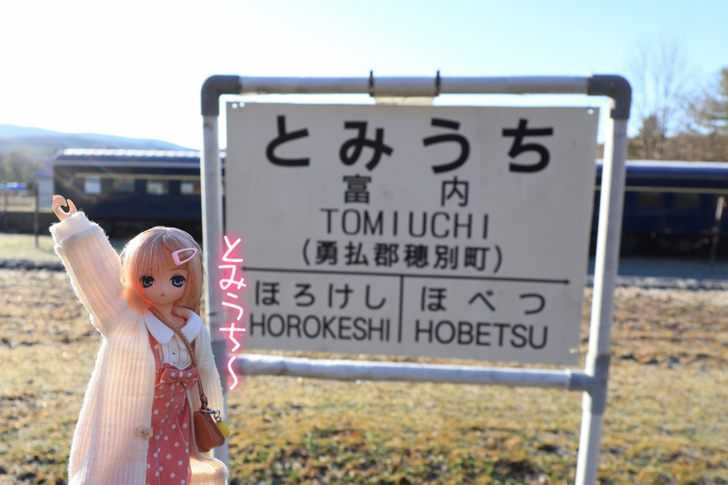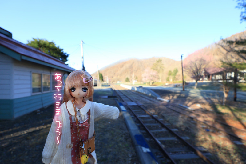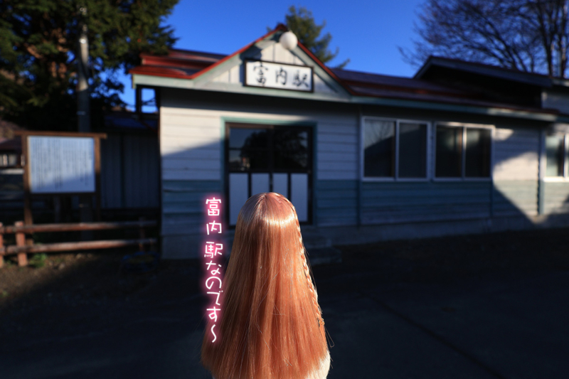 快晴の土曜日、愛ちゃんと旧富内駅舎へ訪れた。