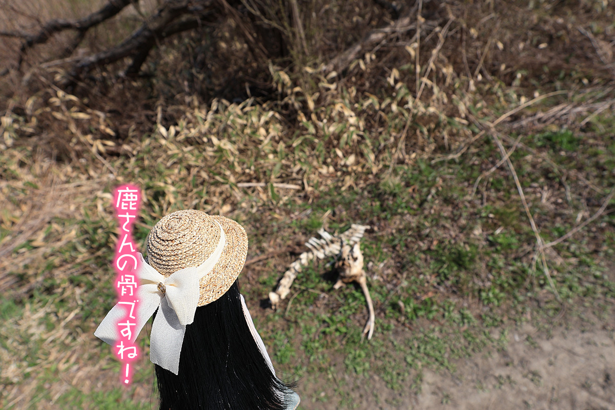 鹿さんの頭蓋骨と角、背骨の白骨( ・ิω・ิ )